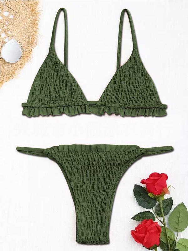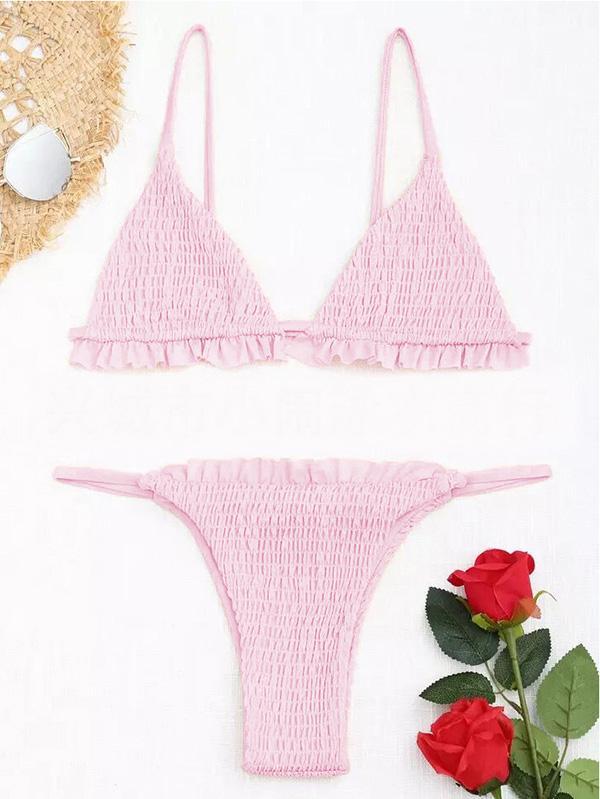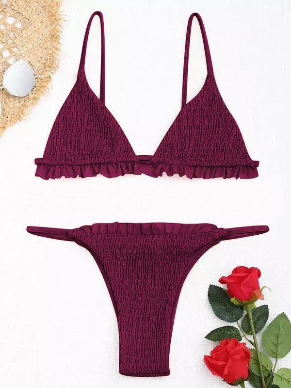 Pleated Triangle Top Smocking Bikinis Swimwear