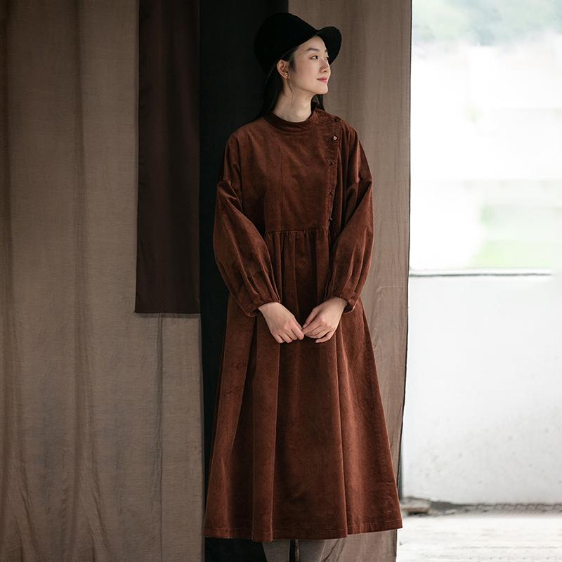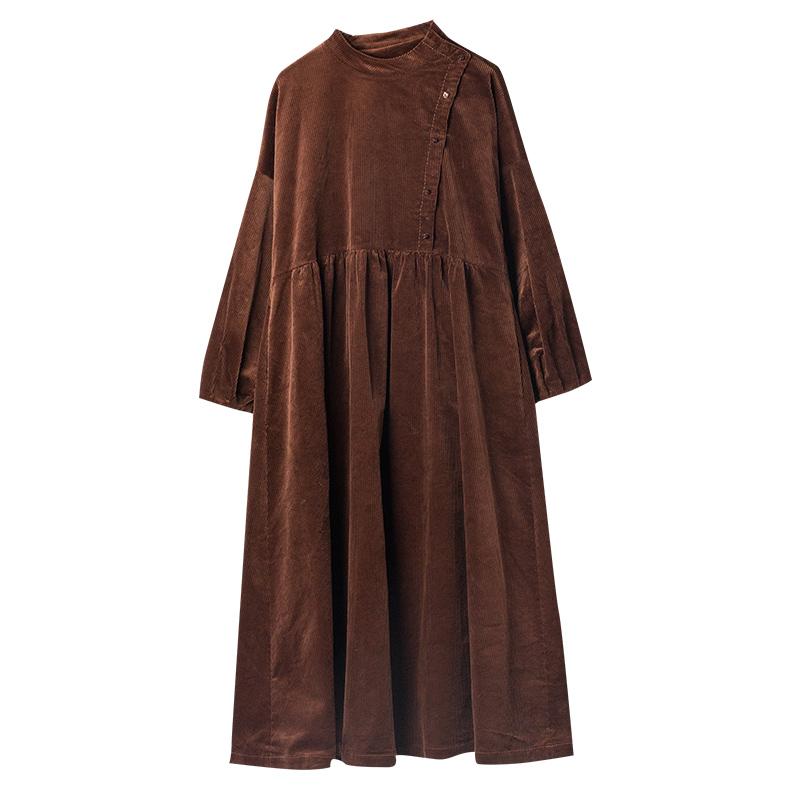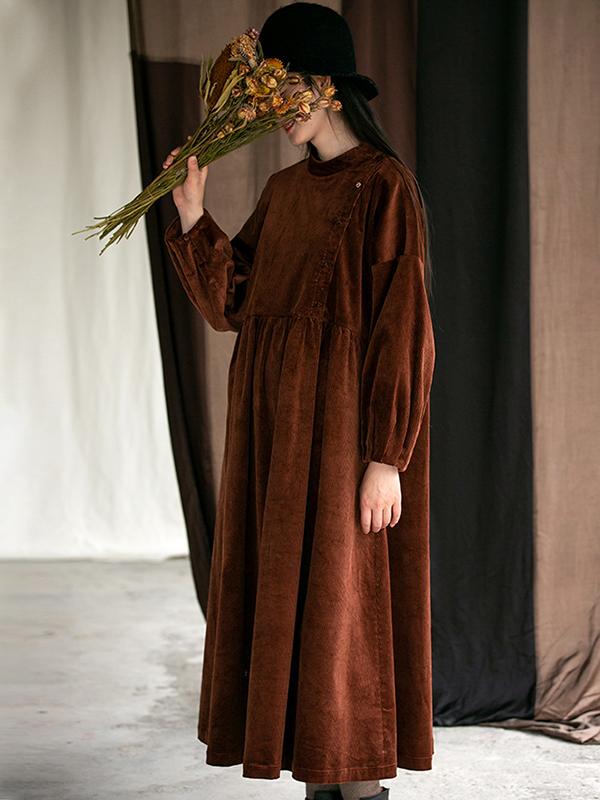 Plus Size - Autumn Winter Pleated Corduroy Dress
