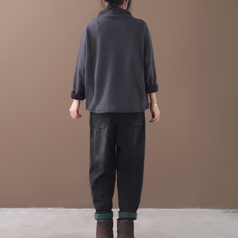Plus Size - Casual Loose Striped Thermal Sweatshirt