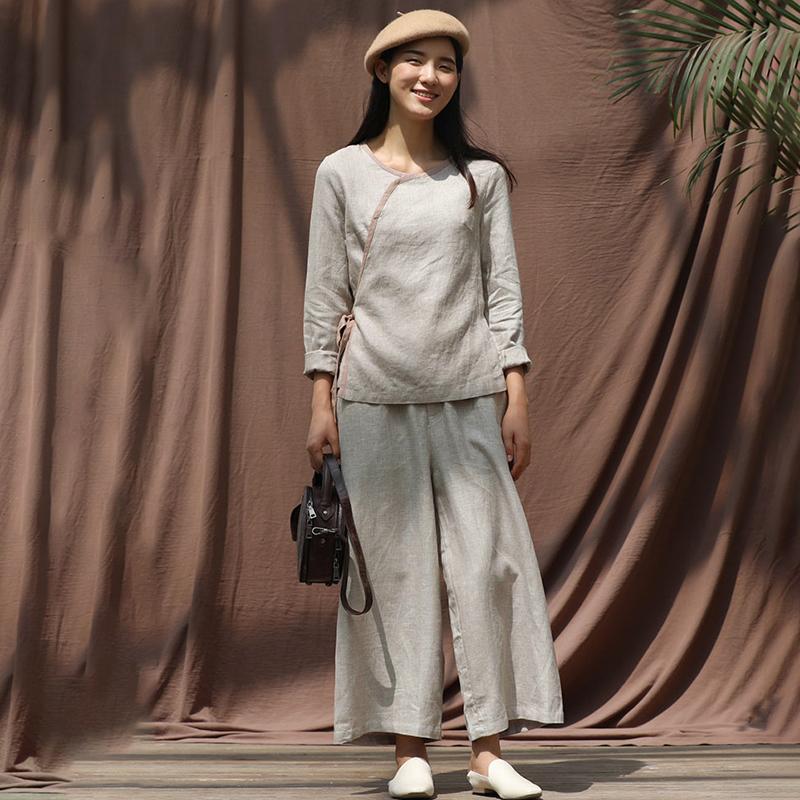 Plus Size Chinese Style Solid Color Two Piece Suit