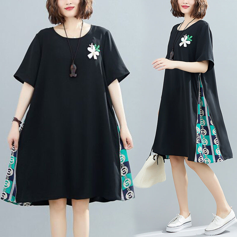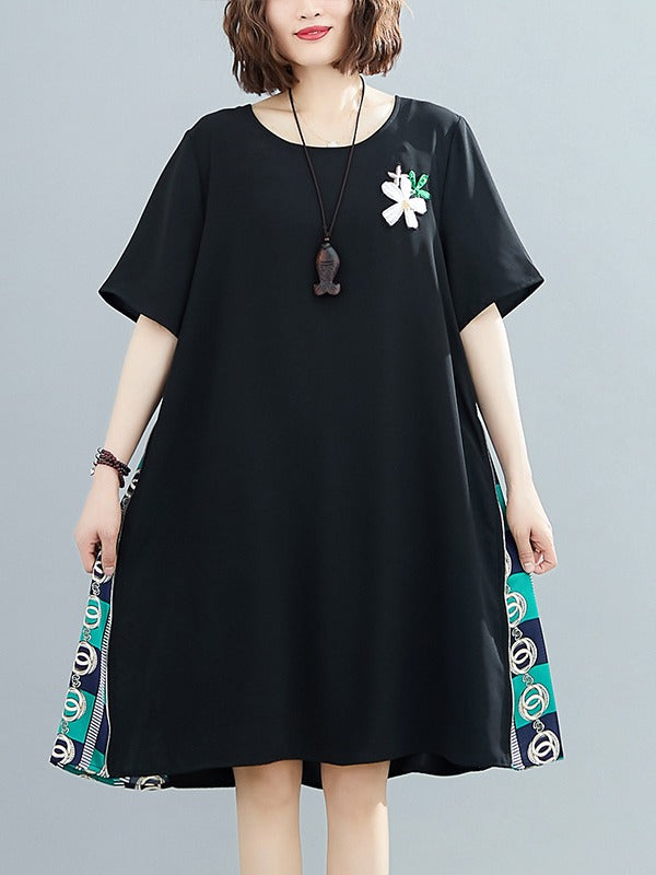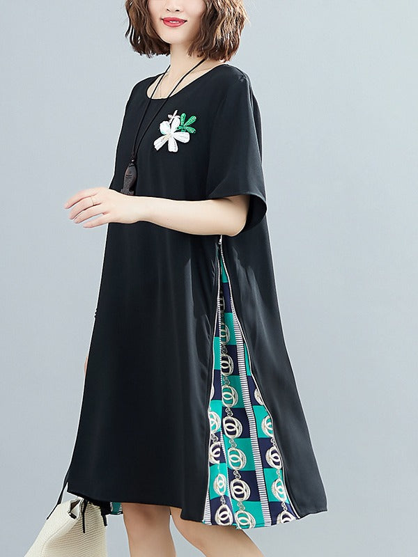 PLUS SIZE LOOSE SPLIT-JOINT PRINT MIDI DRESS
