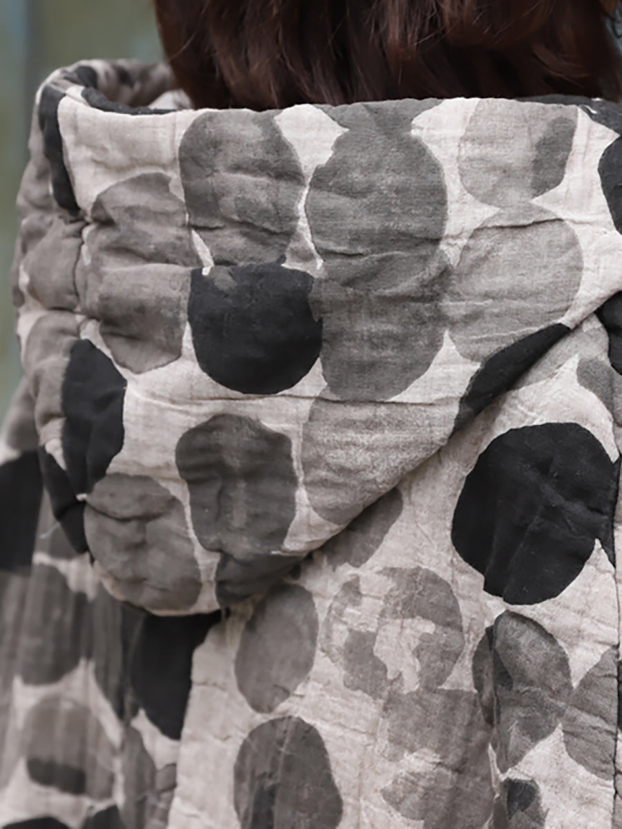 Plus Size Retro Ink Dot Loose Hooded Overcoat