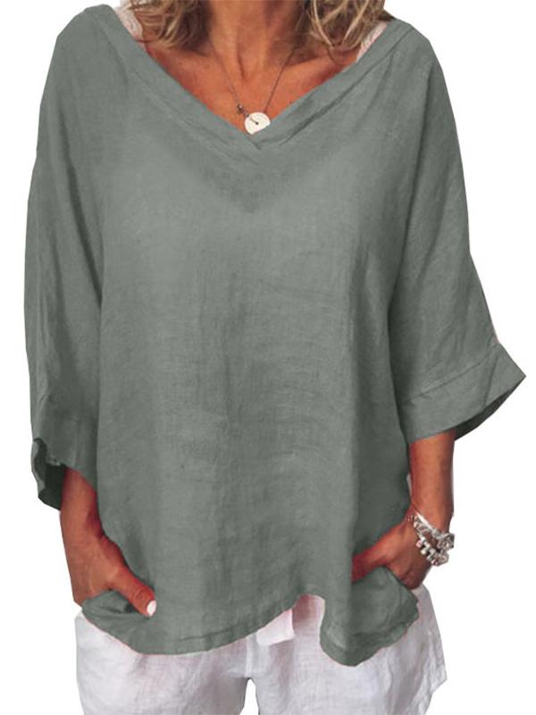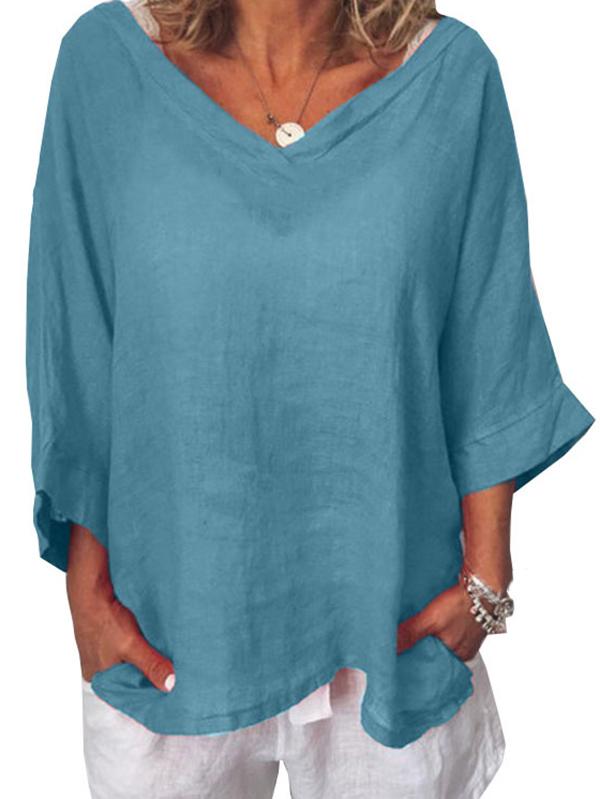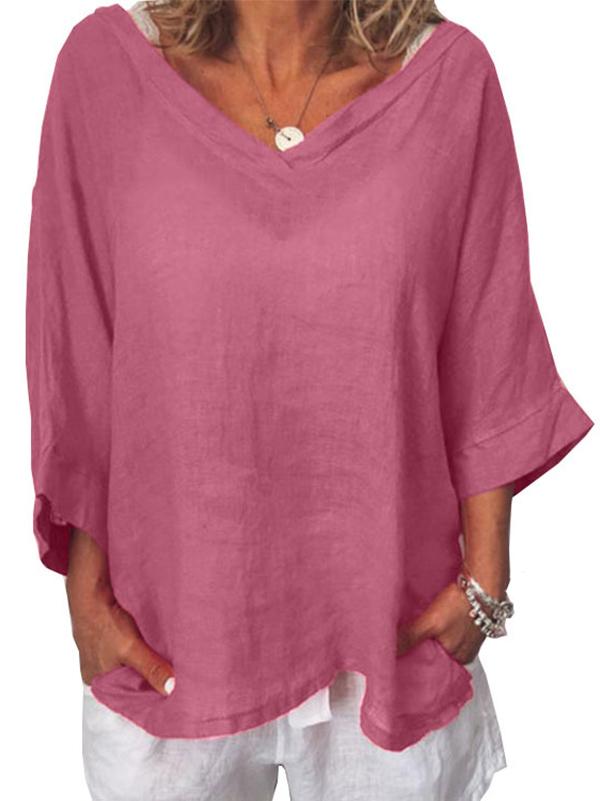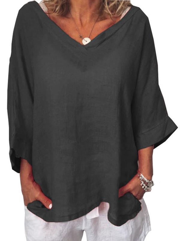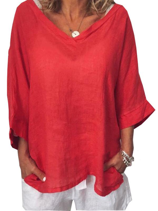 Plus Size Short Sleeves V-neck Solid Colors LooseBlouses&shirts Tops