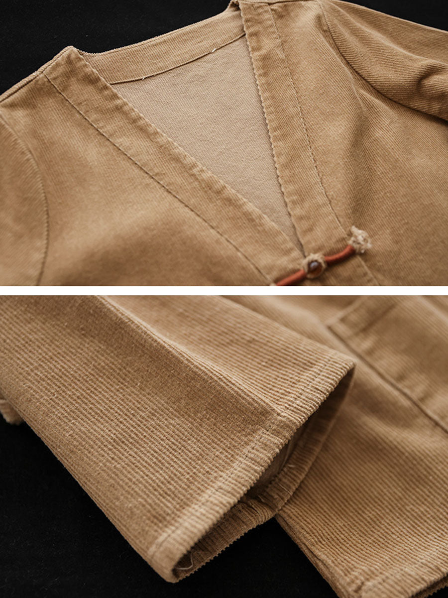 Plus Size Women Autumn Ethnic Solid Button 100%Cotton Coat