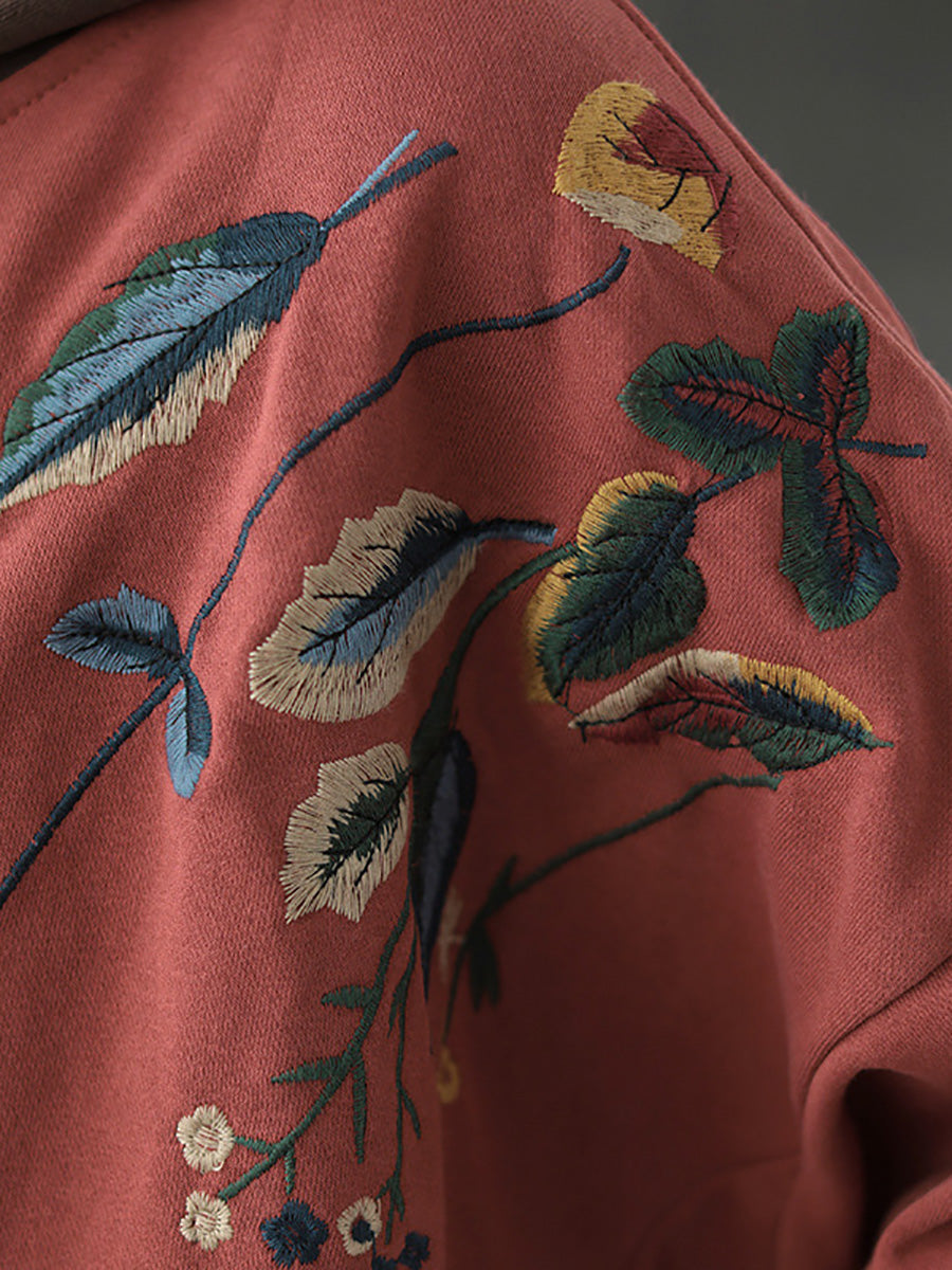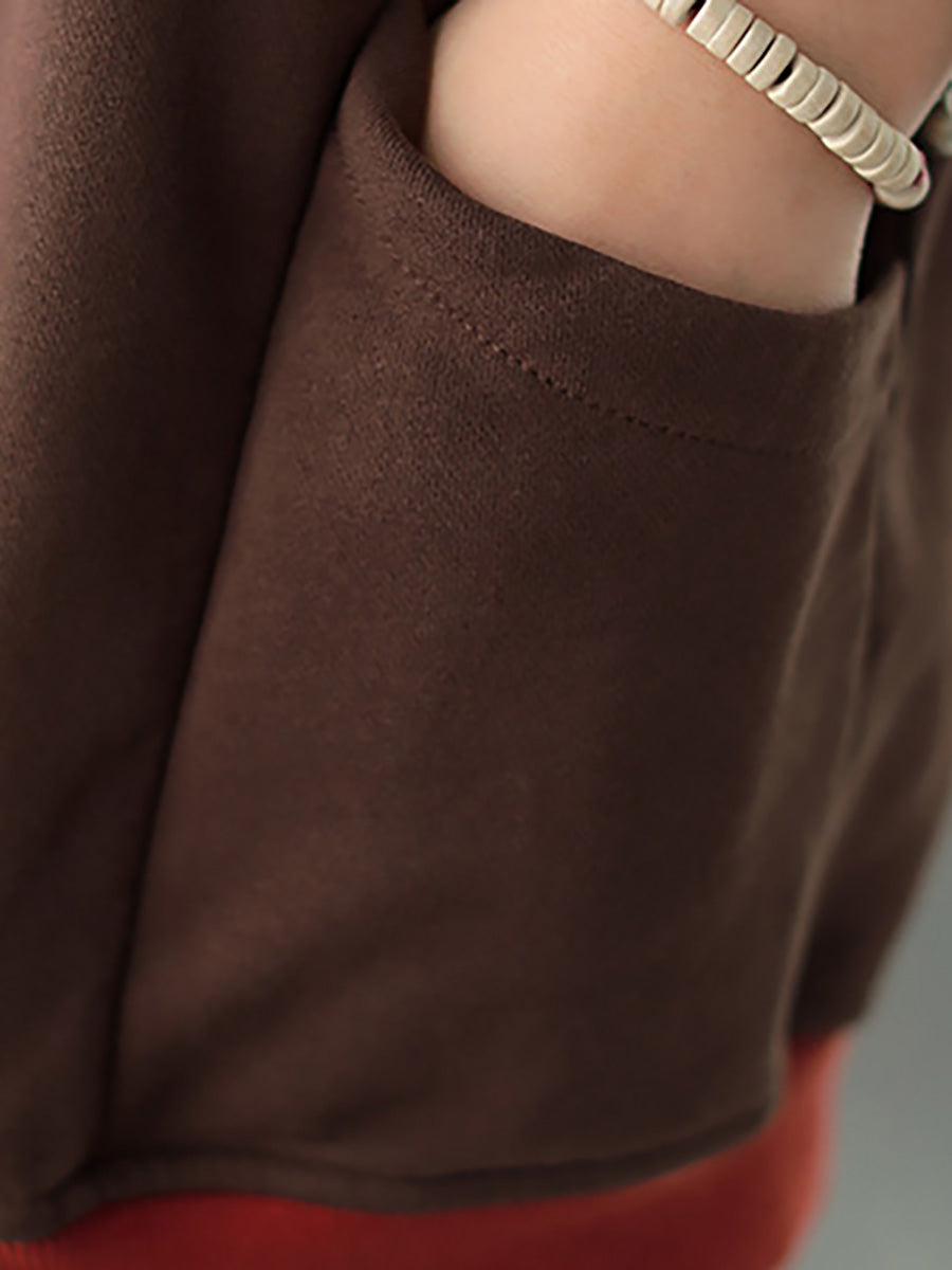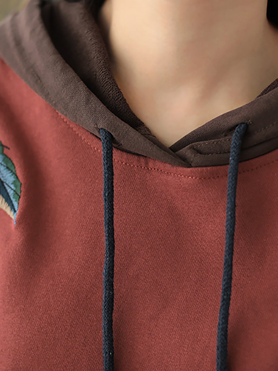 Plus Size Women Autumn Leaf Hooded Colorblock 100%Cotton Sweatshirt
