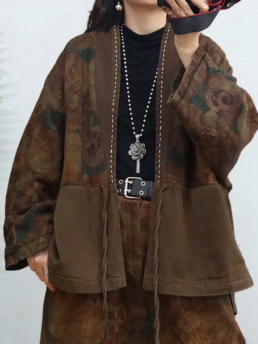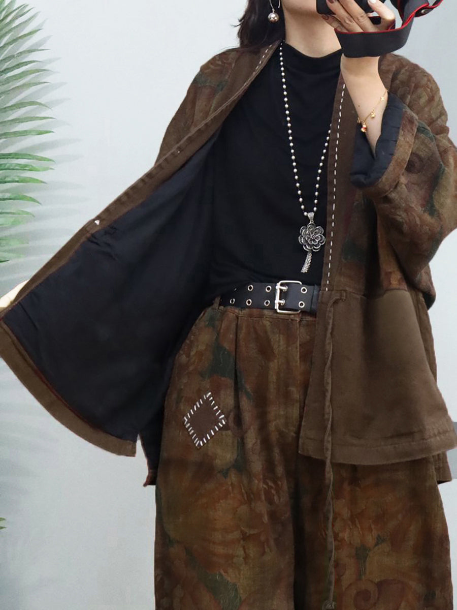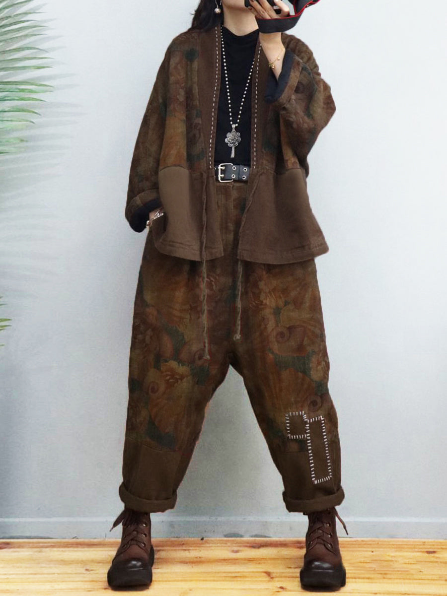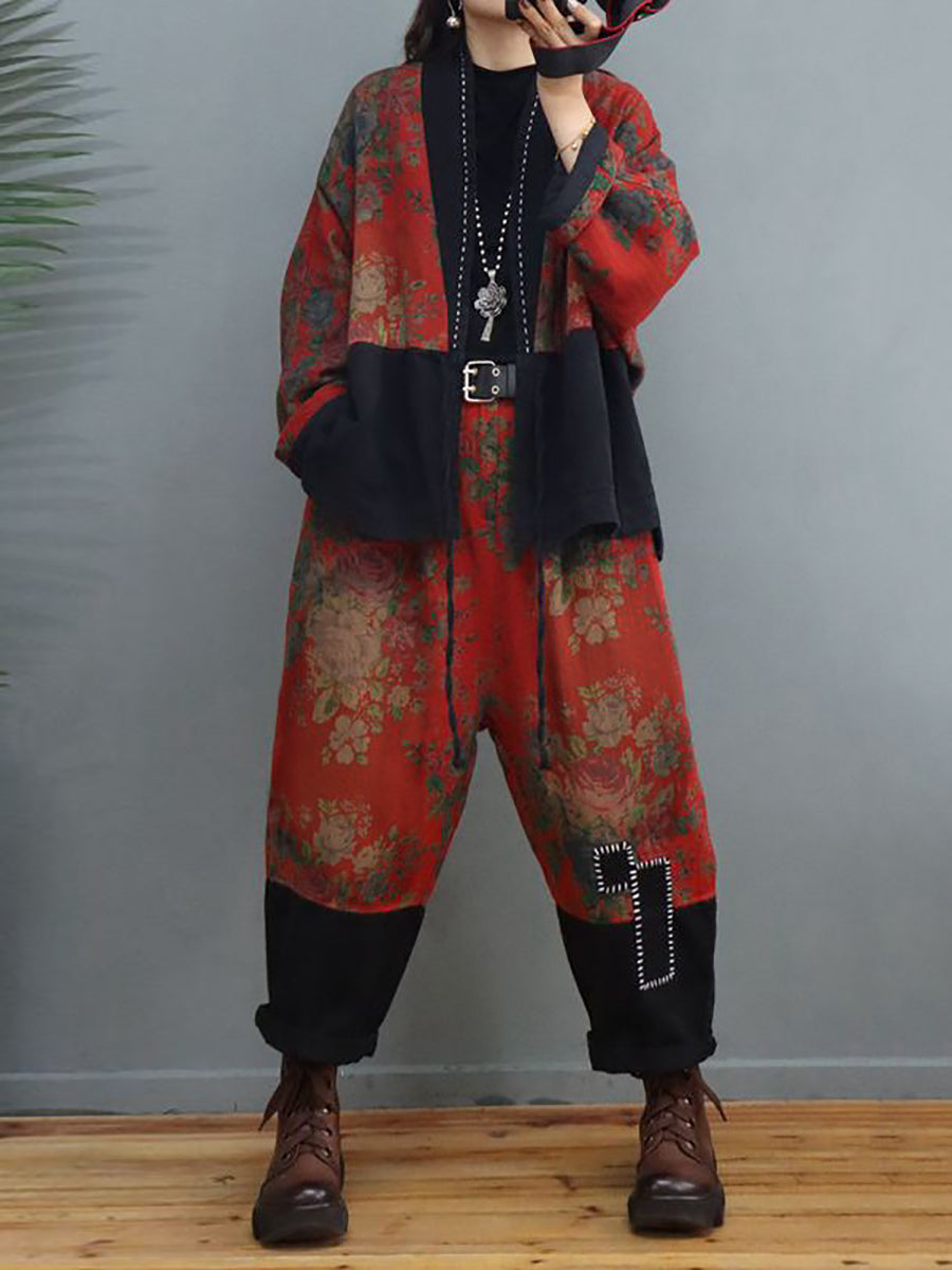Plus Size Women Ethnic Floral Spliced Stitching Suits