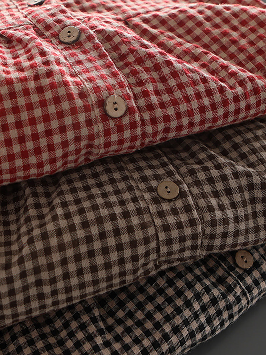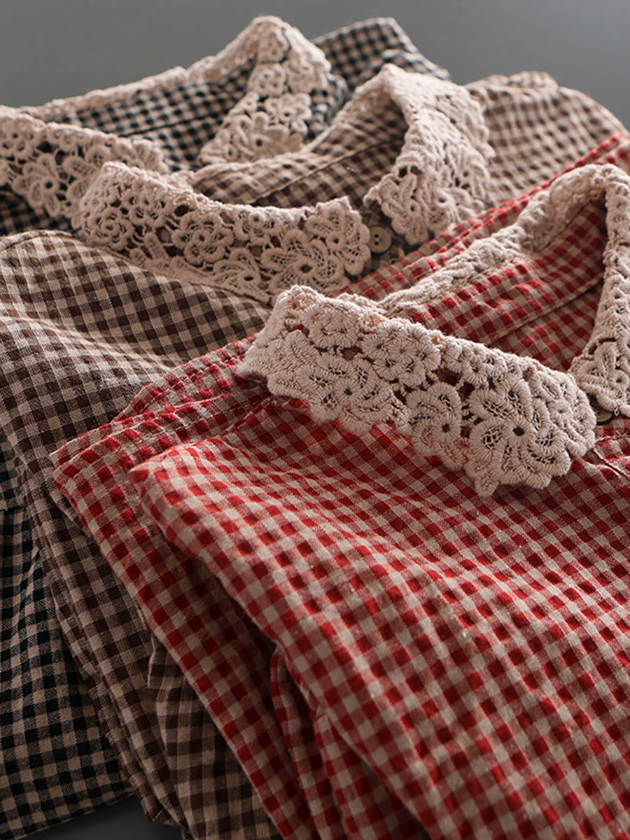 Plus Size Women Loose Breasted Lace Plaid Tops