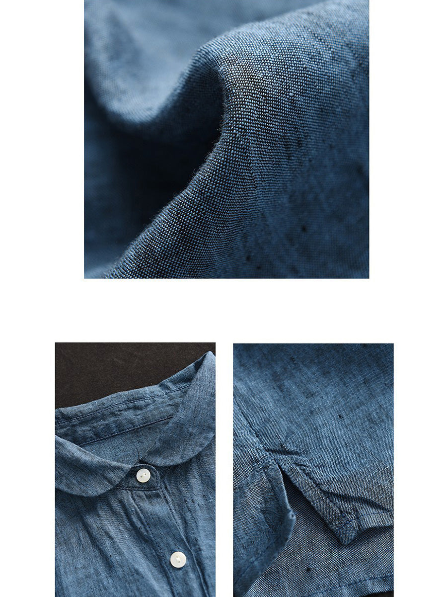 Plus Size Women Vintage Solid 100%Cotton Button-up Shirt