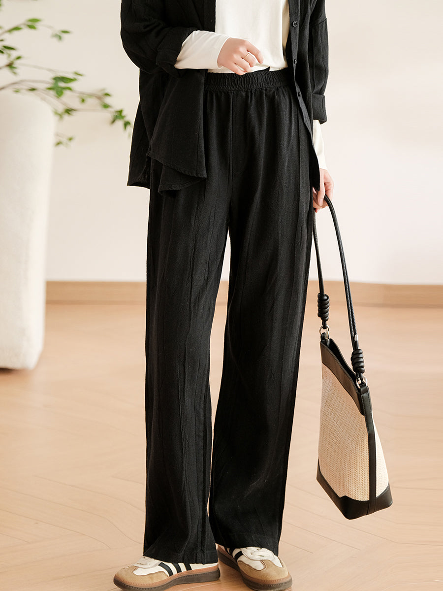 Plus Size Women Vintage Spring Wide-leg Linen Cotton Pants