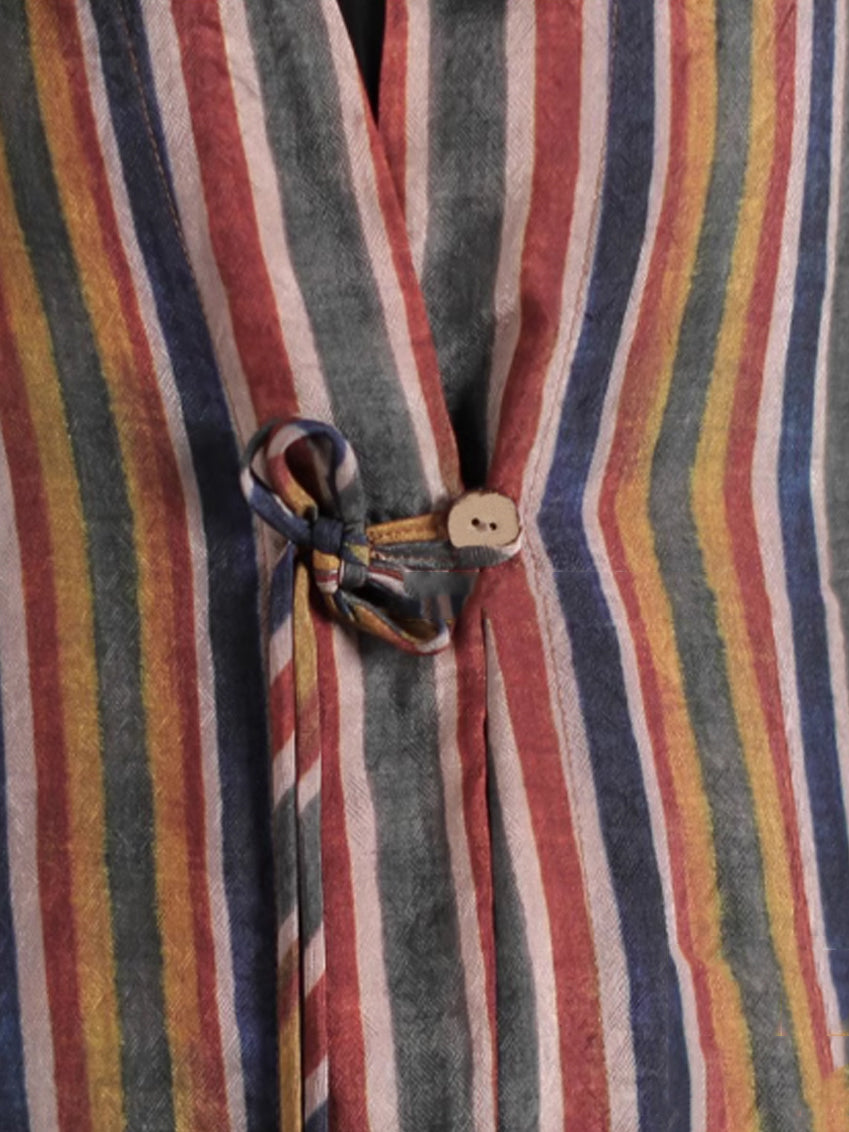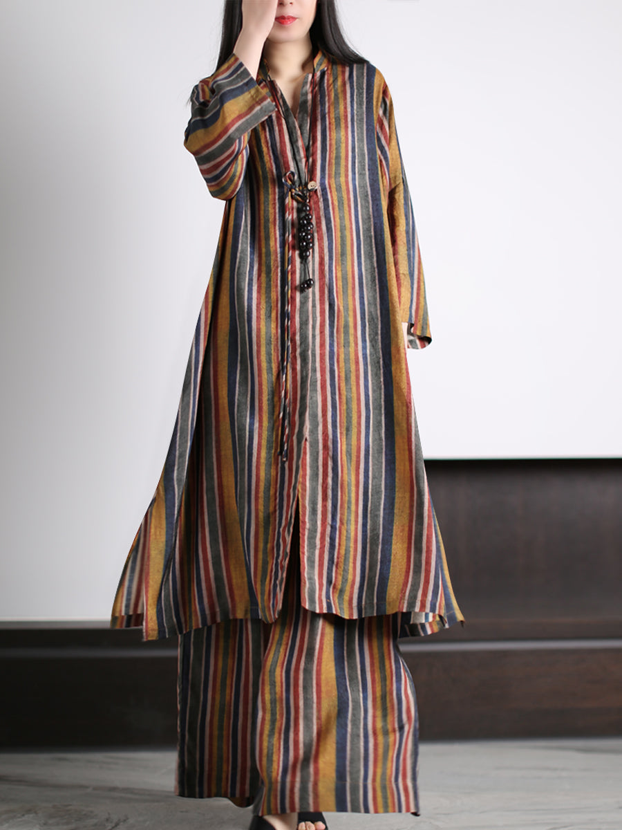 Plus Size Women Vintage Stripe Loose Long Shirt+Pants