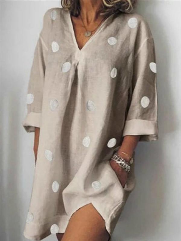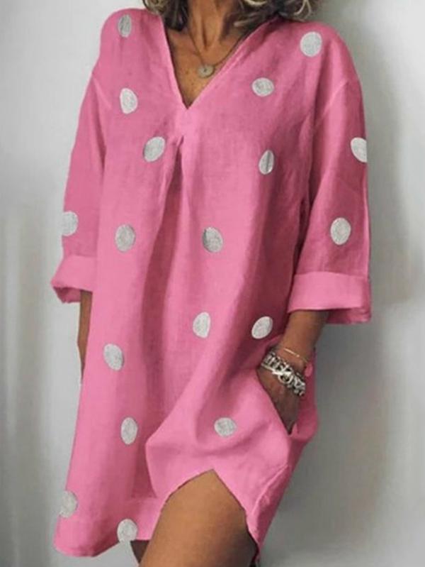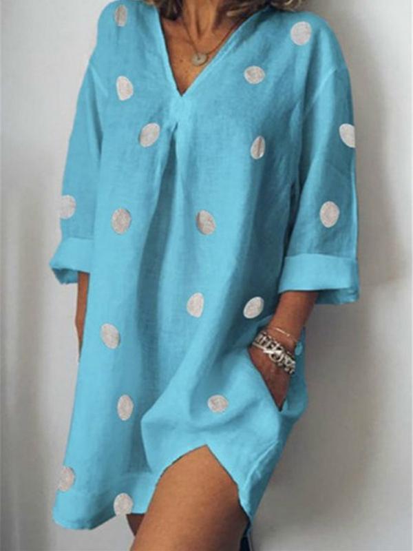 Polka-Dot V-neck Half Sleeve Mini Dress