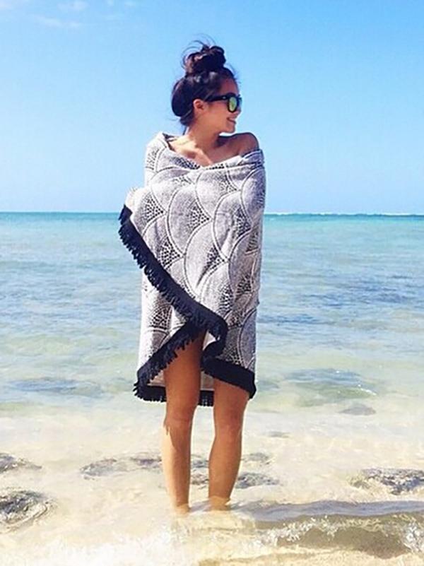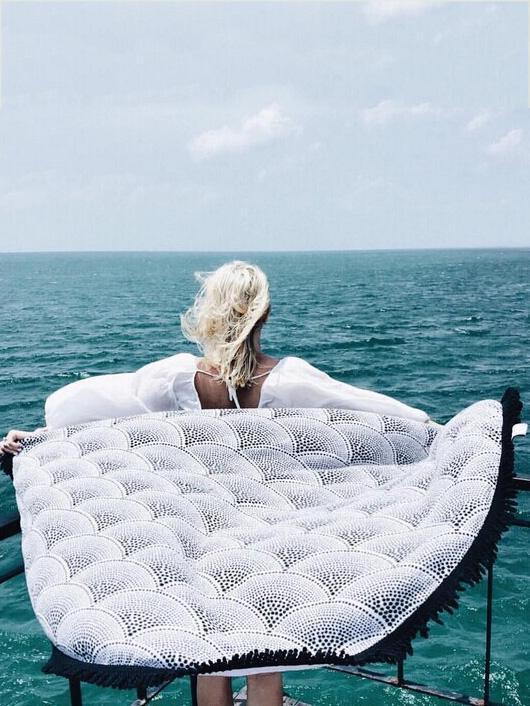 Popular Bohemia Black Tassels Round Beach Mat Yoga Mat