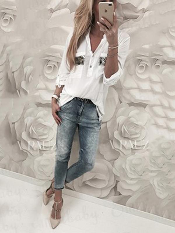 Popular Long Sleeves V-neck Blouses&shirts Tops