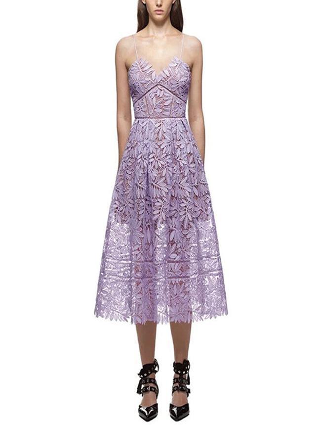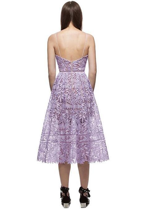 Pretty Violet Hollow Spaghetti-neck Midi Dress