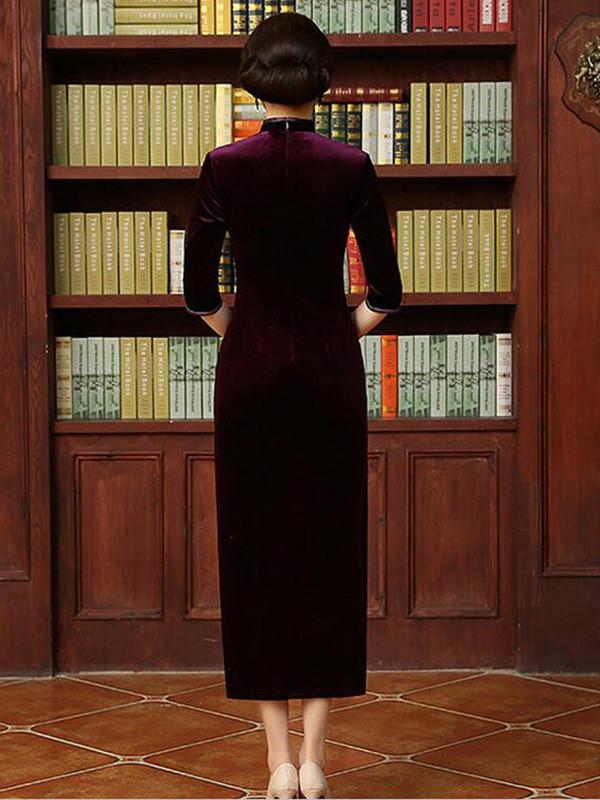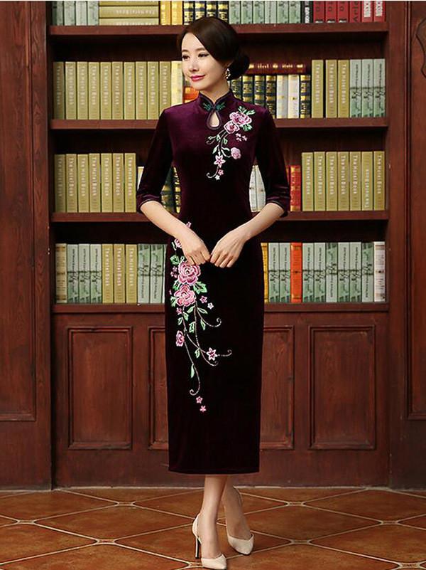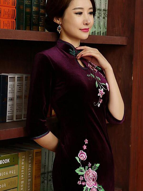 Embroidery Half Sleeve Long Cheongsam Dress