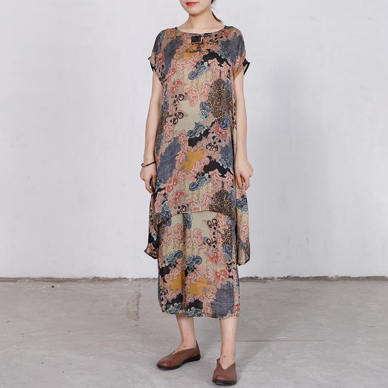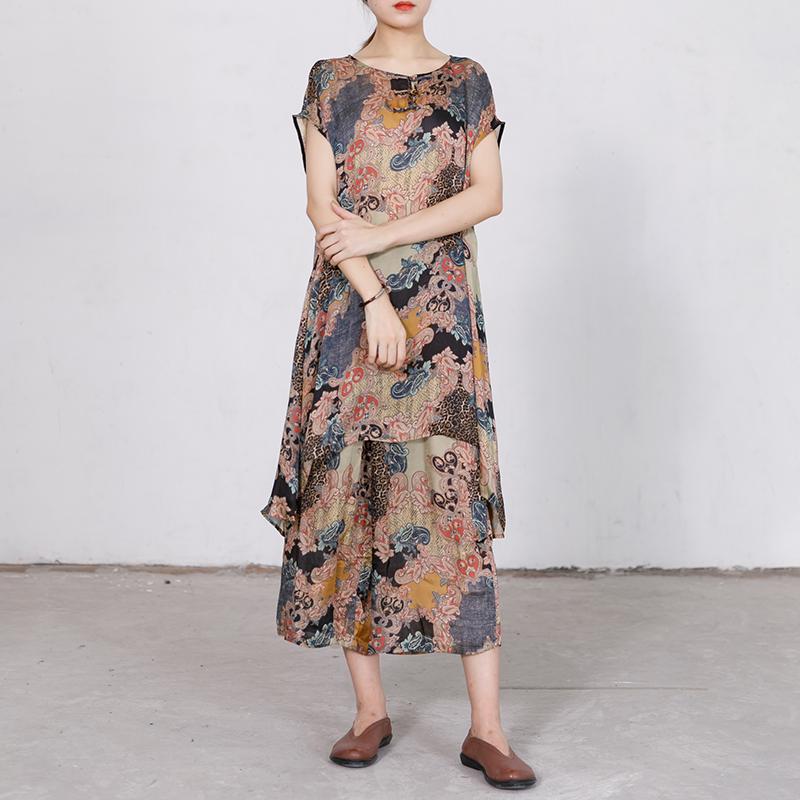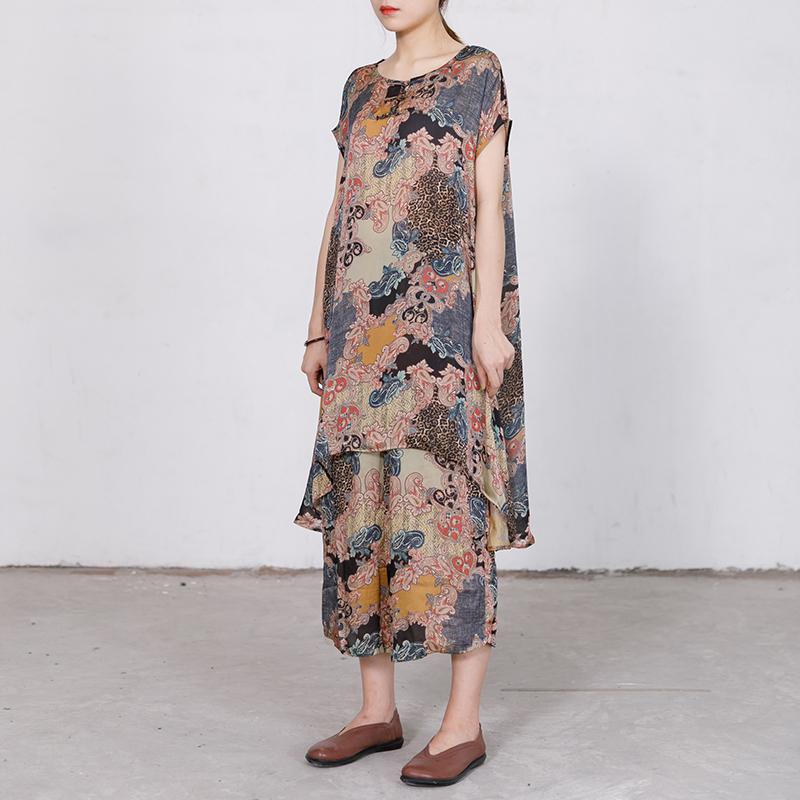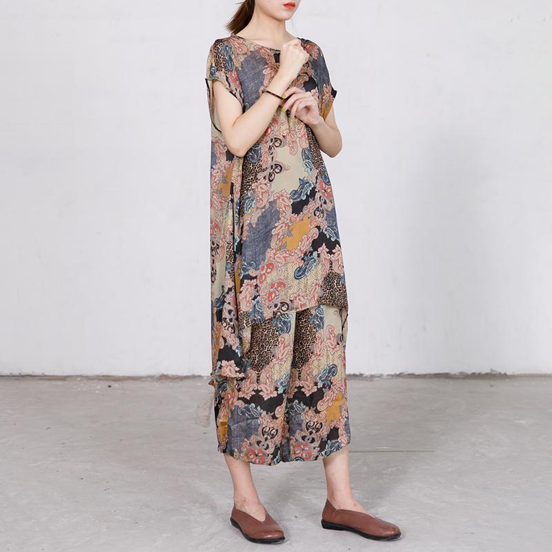 Print Irregular Short Sleeve Blouse And Wide Leg Pants