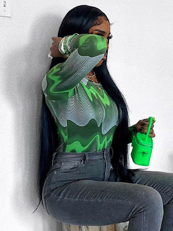 Print Long Sleeves Bodysuits