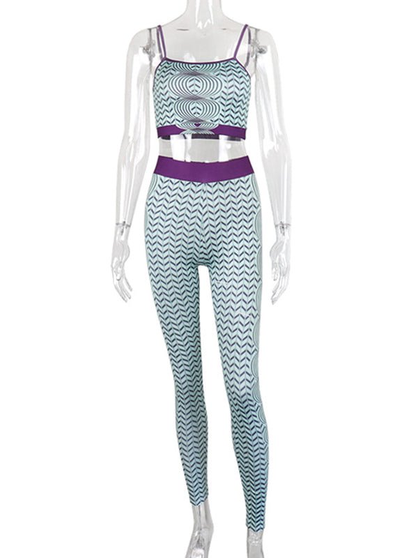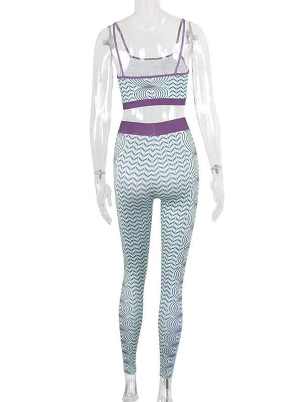 Printed Backless Spaghetti-Neck Vest&Leggings Suits