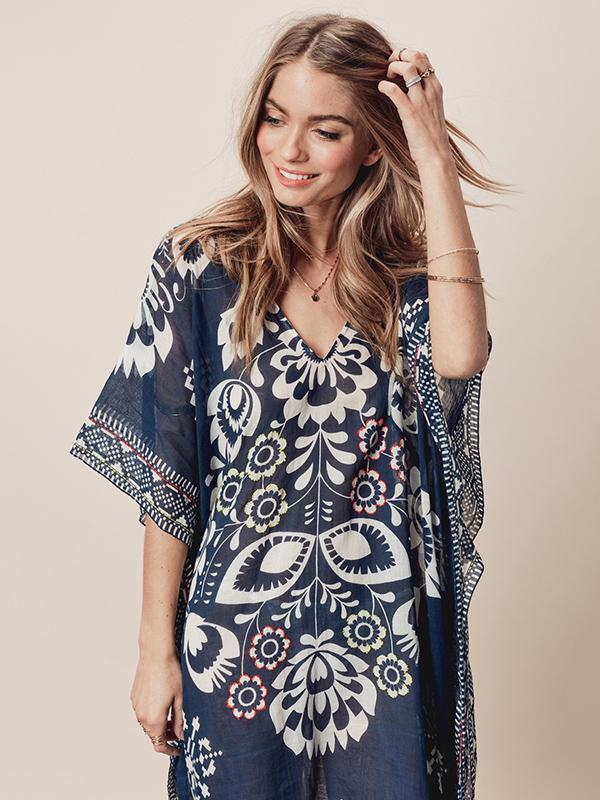 Printed Chiffon Loose Cover-Up Tops