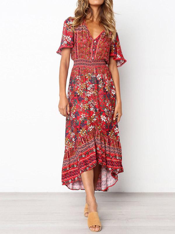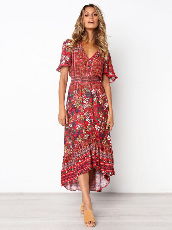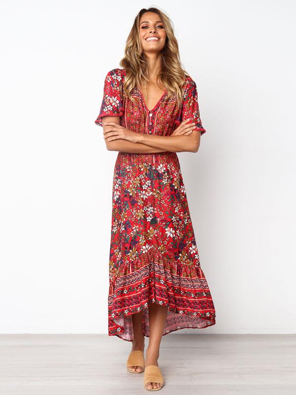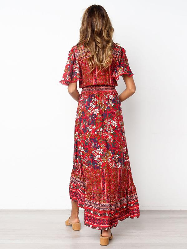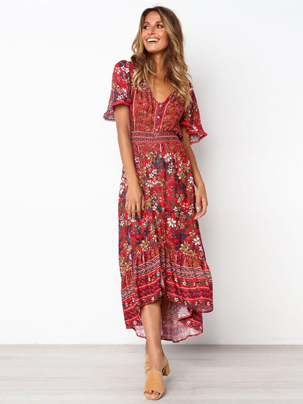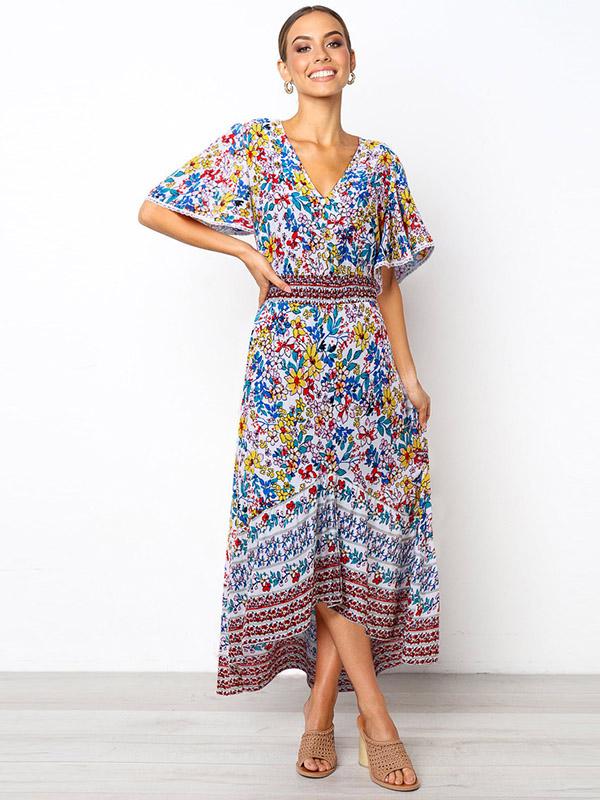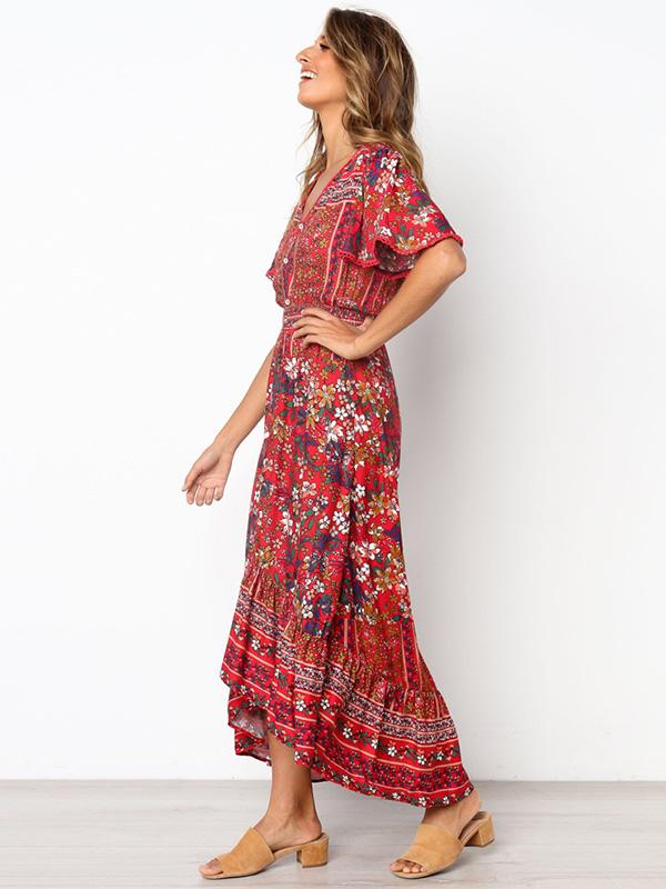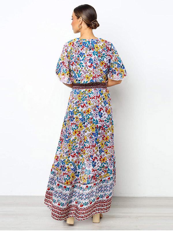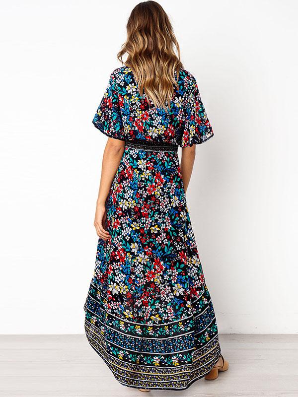Printed Flared Sleeve Bohemian Flowers Maxi Dress