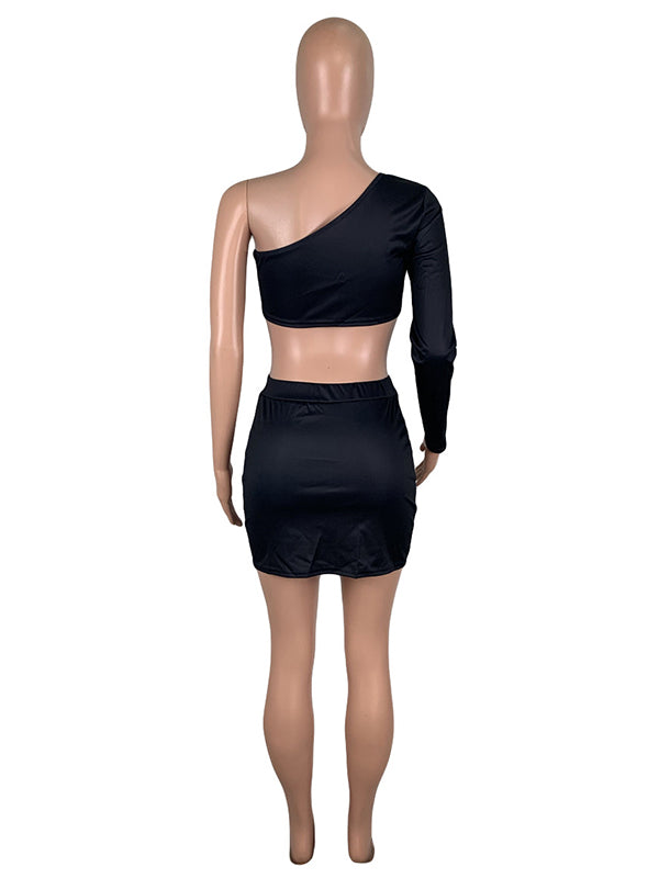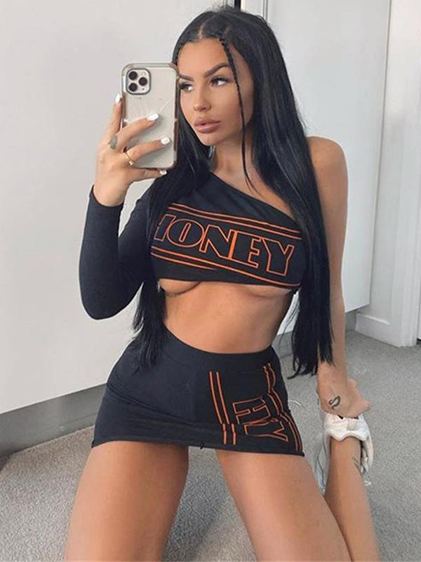 Printed Letters One-Shoulder Tees&Skirts Suits