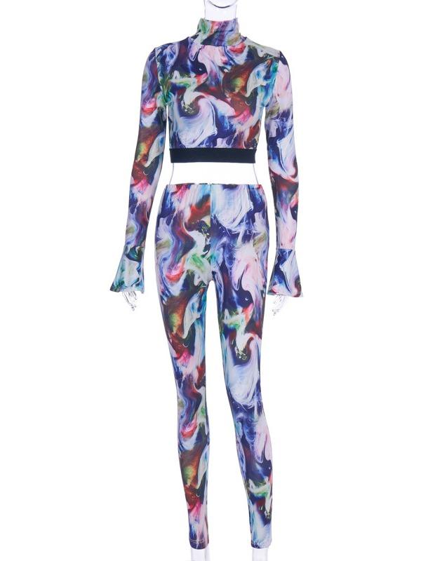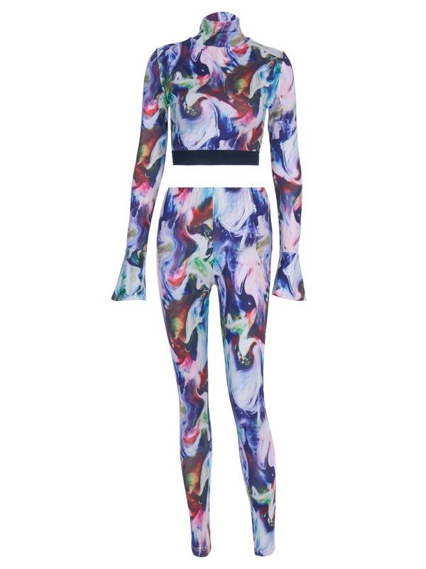 Printed Long Sleeve Gym Sport Hoodie And Leggings Suit ACTIVE WEAR