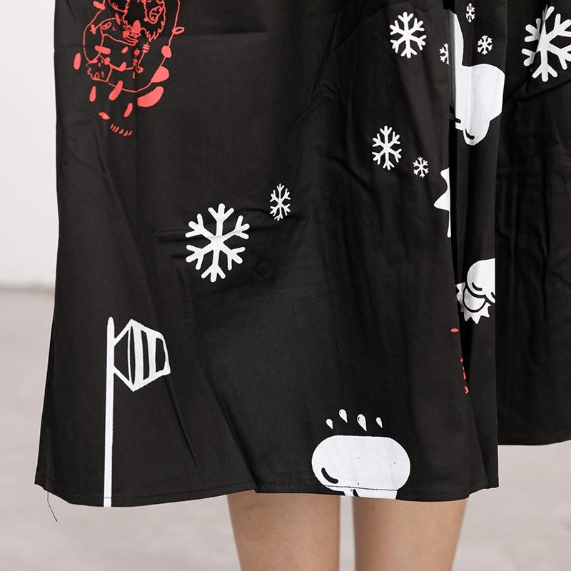 Printed Polo Collar Long Sleeve Cotton Pleated Dress