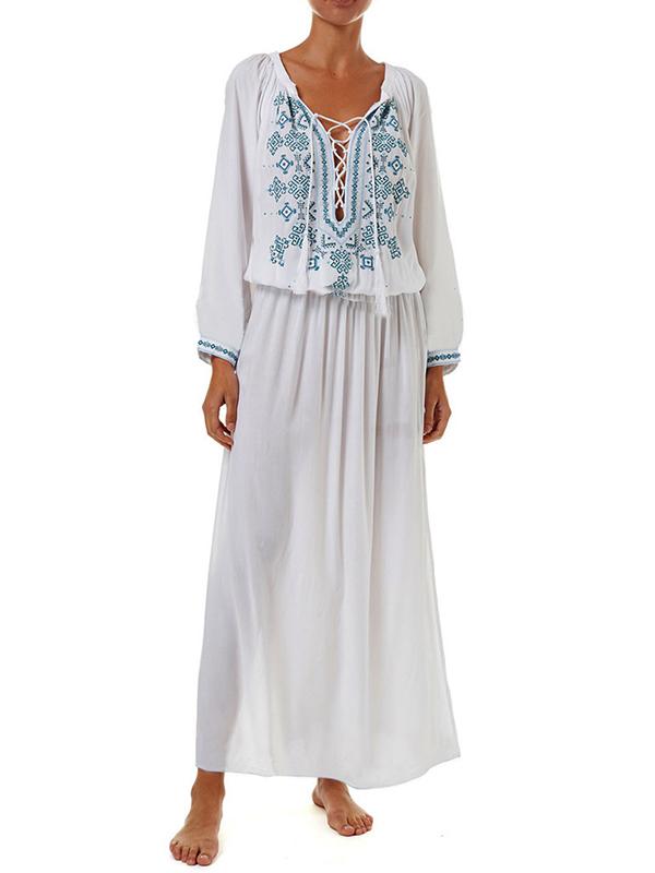 Printed Raised Band Cover-up Maxi Dress