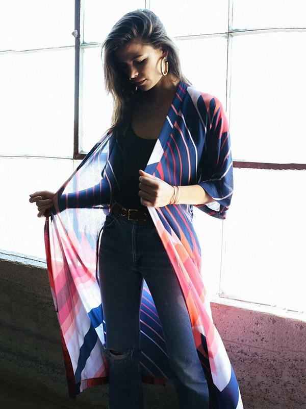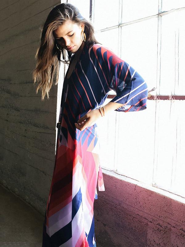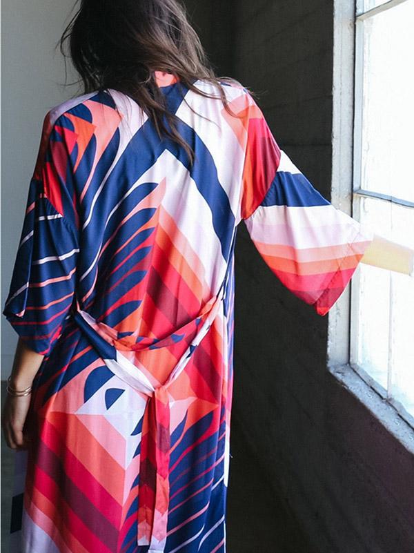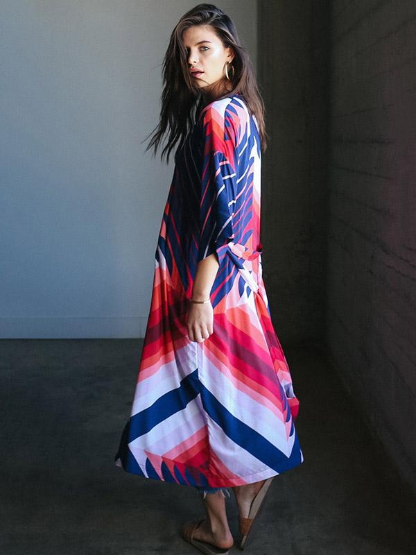Printed Short Sleeves Belt Cover-Ups Swimwear
