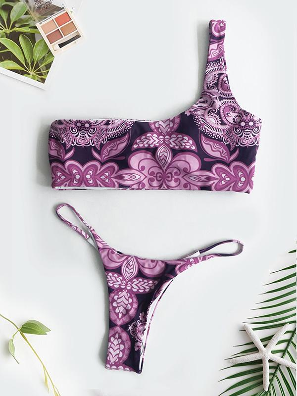 Printed Single Shoulder Bikinis Swimwear