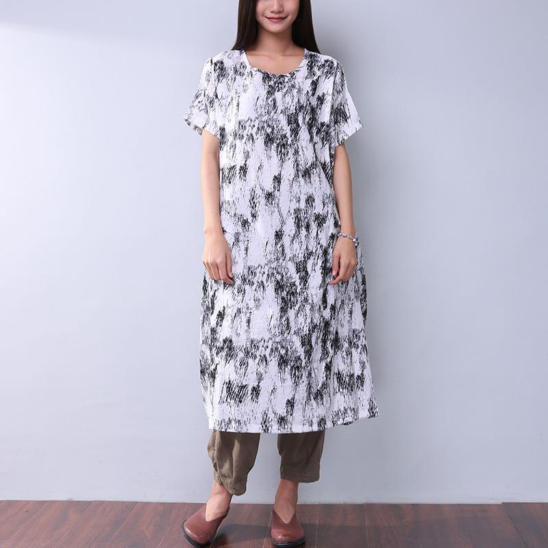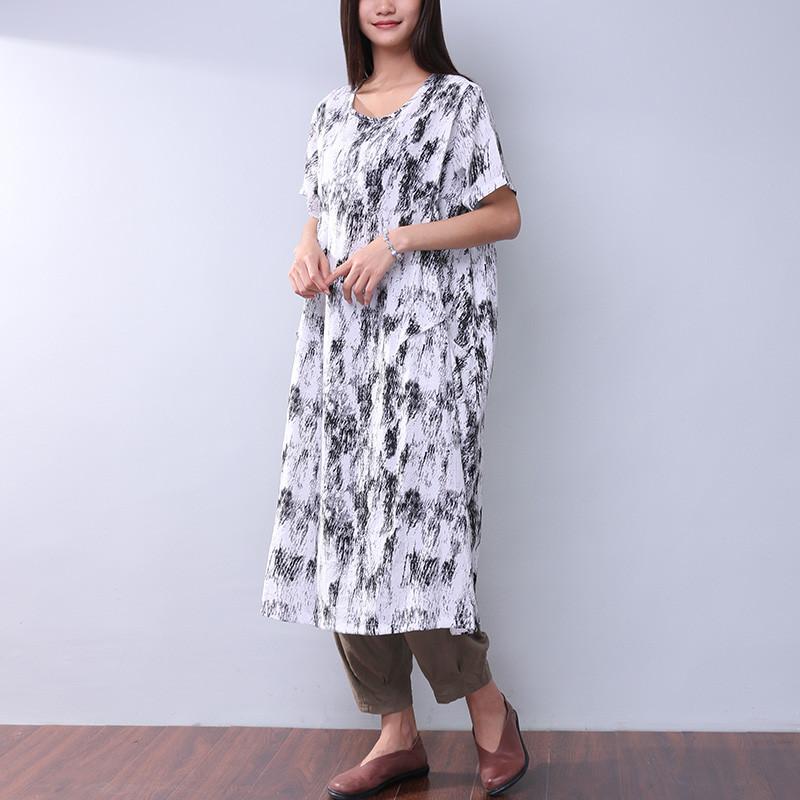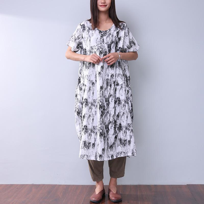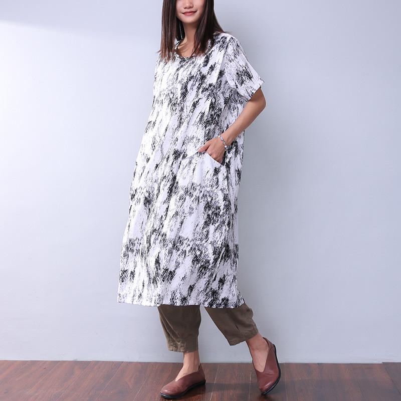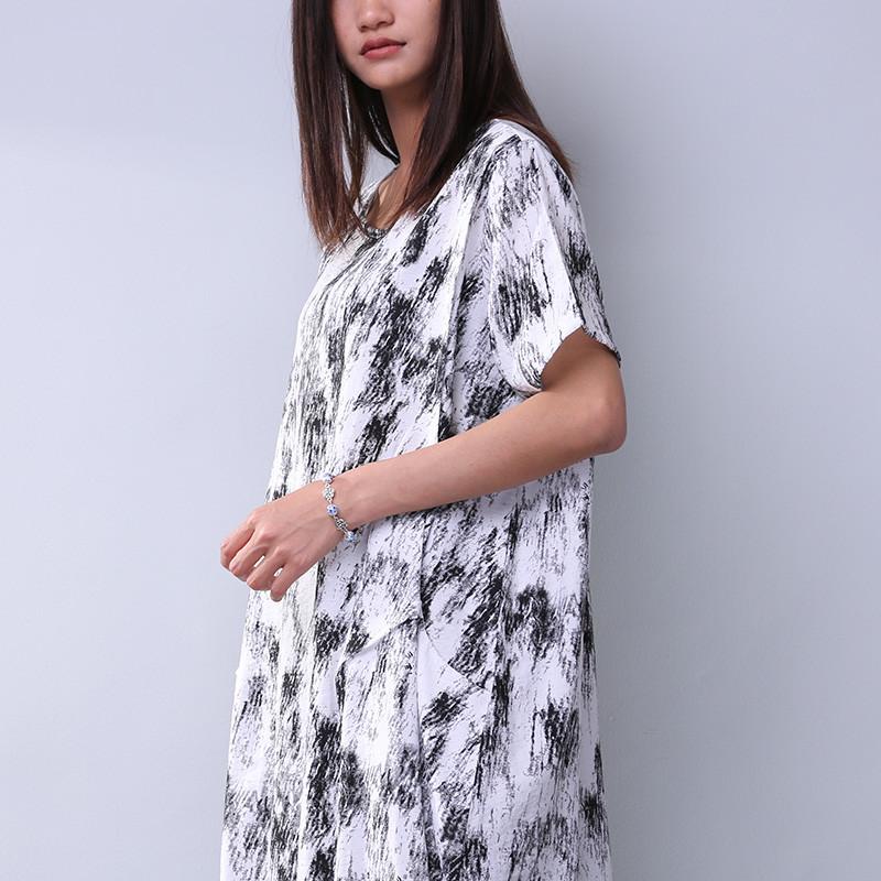 Printing Loose Pocket Women Casual Dress