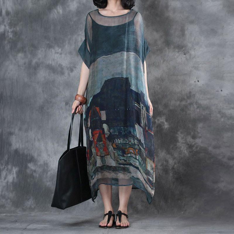 Printing Summer Short Sleeves Round Neck Loose Dress
