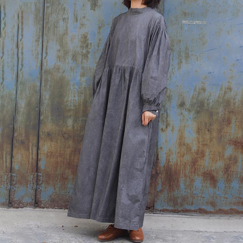 Pure Color Drawstring Retro Comfortable Dress