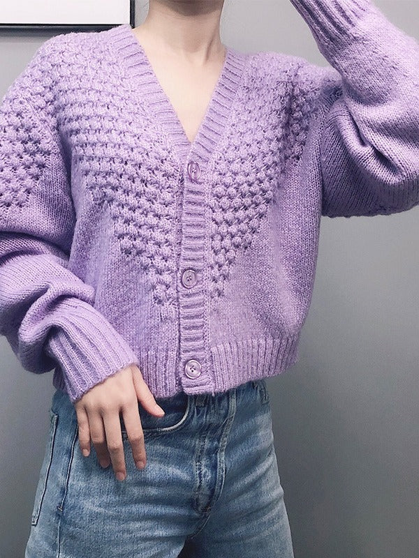 PURPLE VINTAGE PUFF SLEEVE V-NECK OUTWEAR