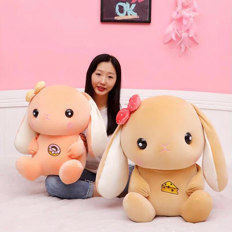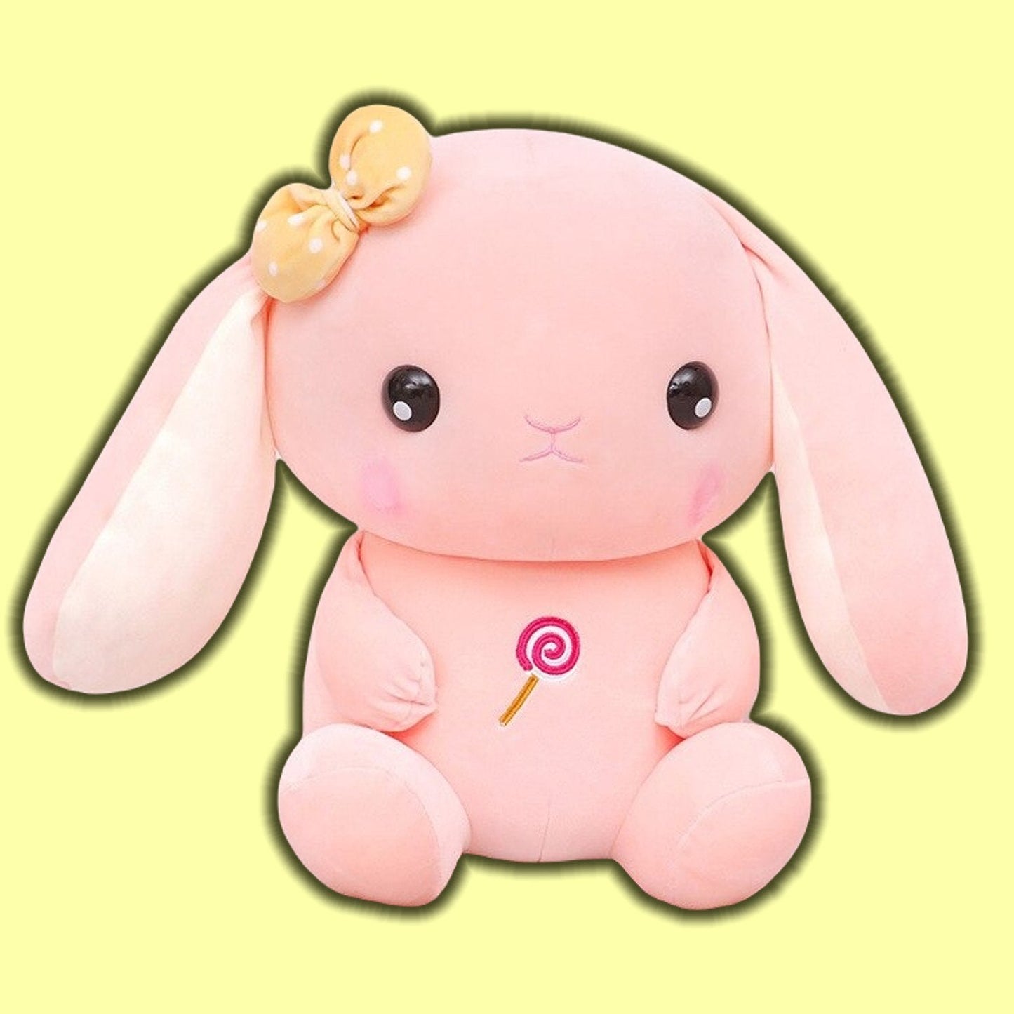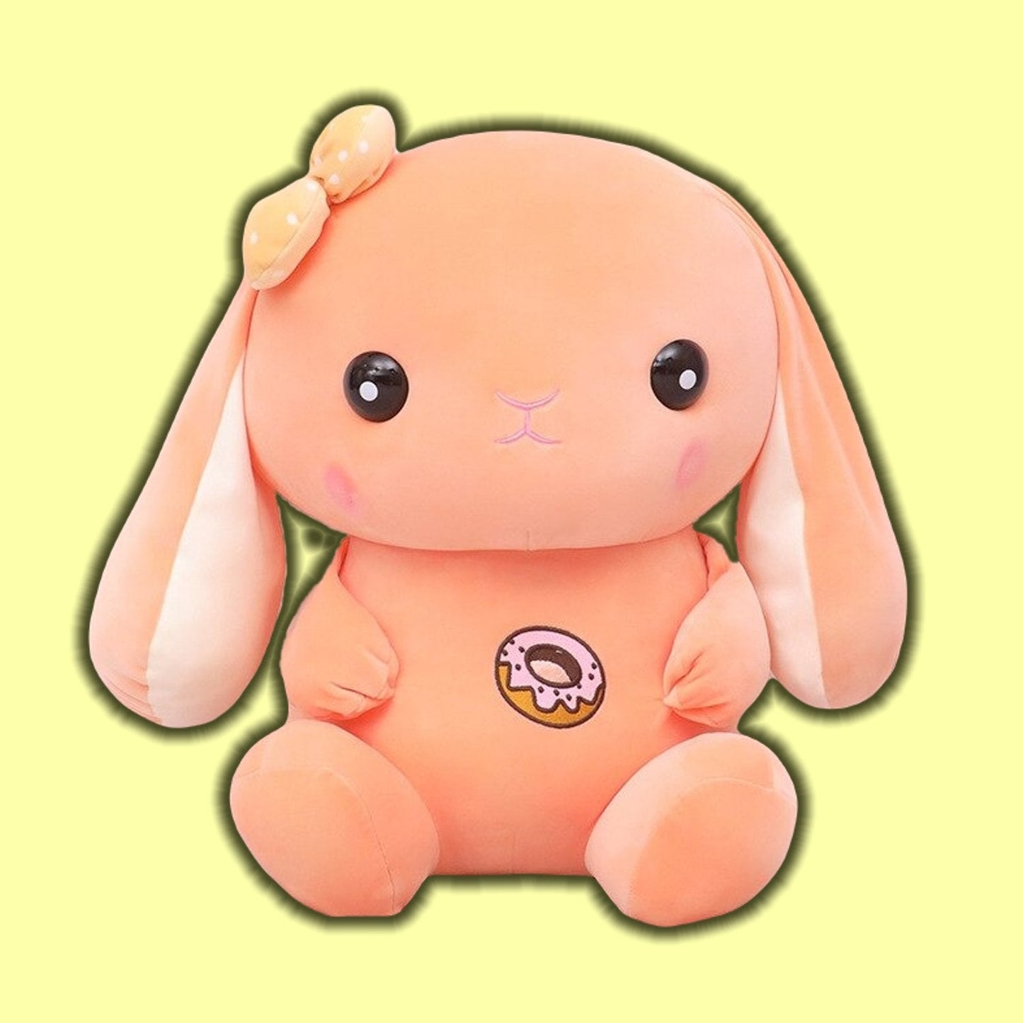 🐰This stuffed rabbit is made from 100% soft premium plush. So soft and very cuddable. Appropriate for ages 1 & up.So cute and cuddly: The bunny plush is cute. Your little baby's closest playmate, it has long floppy ears, sweet smile, blue-white scarf. Lovely appearance and a perfect size can be able to carry around.