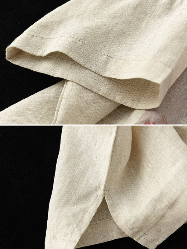 Ramie Cotton Printing Round-Neck T-Shirts Tops