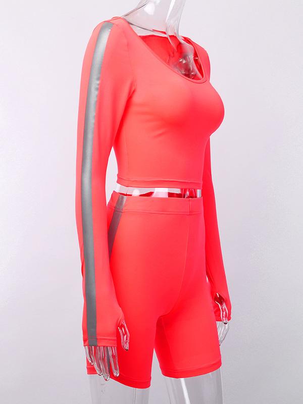 Reflective Long Sleeves Tee and Sports Shorts Suits