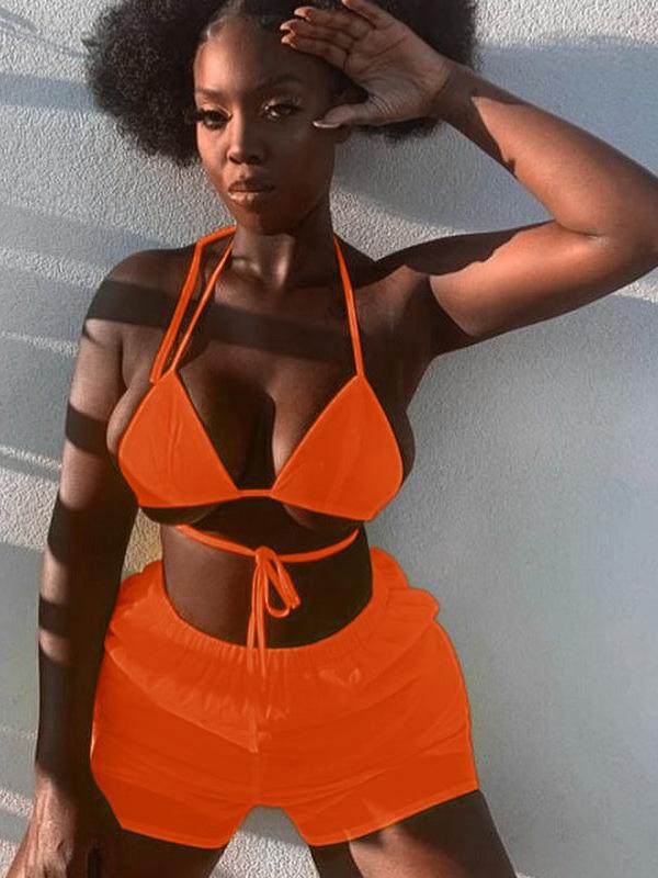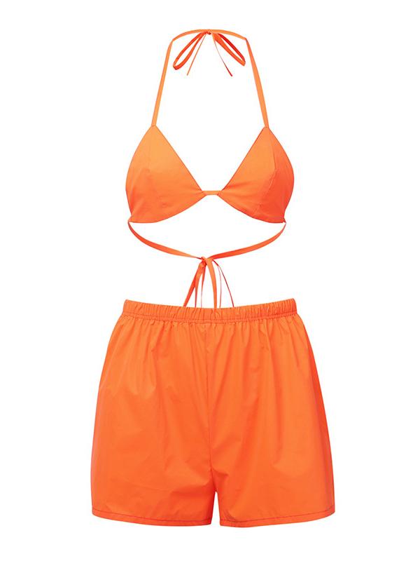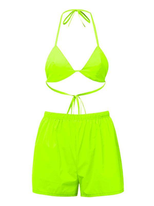 Reflective Sexy Bikini Bra and Sports Shorts Suits