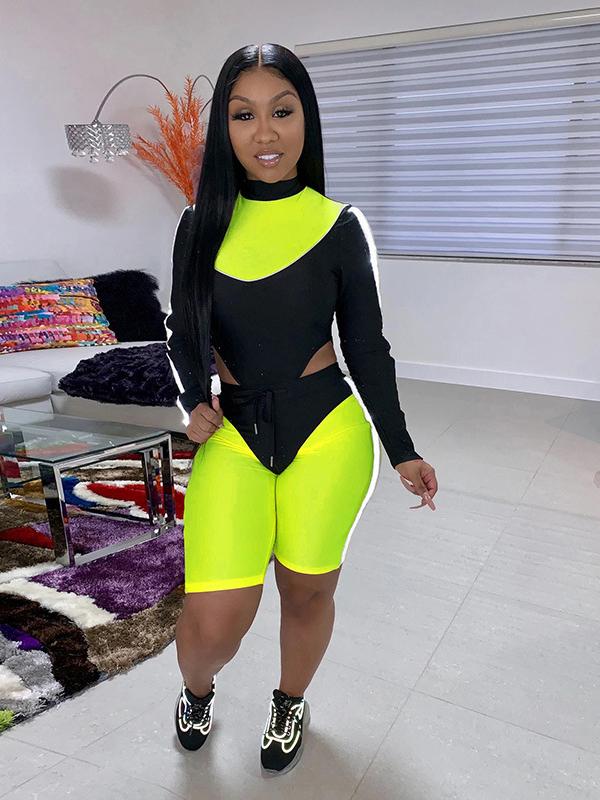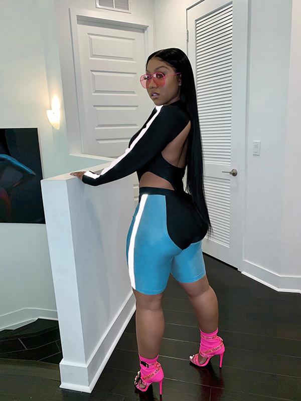 Reflective Split-Joint Backless Tee&Shorts Suits