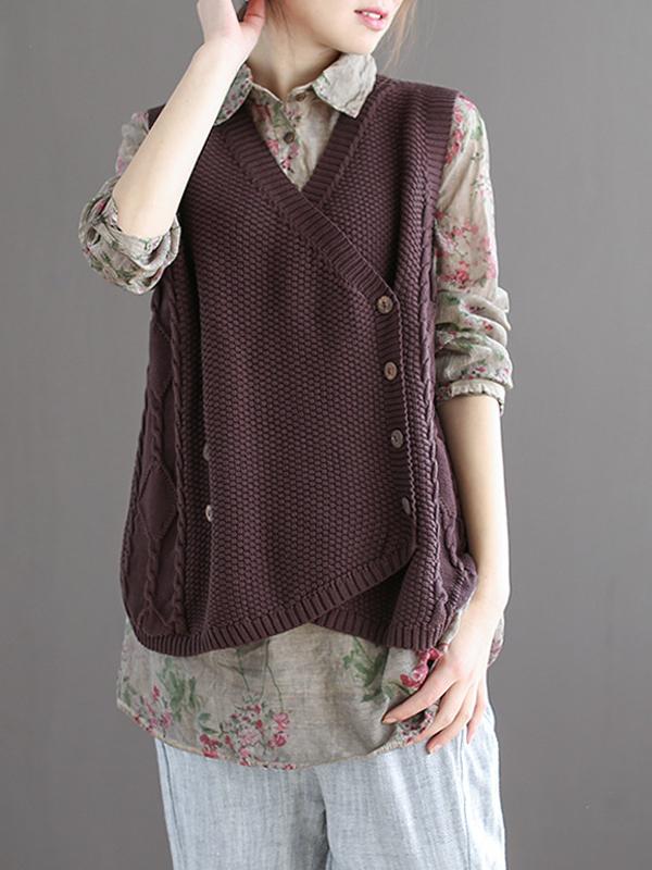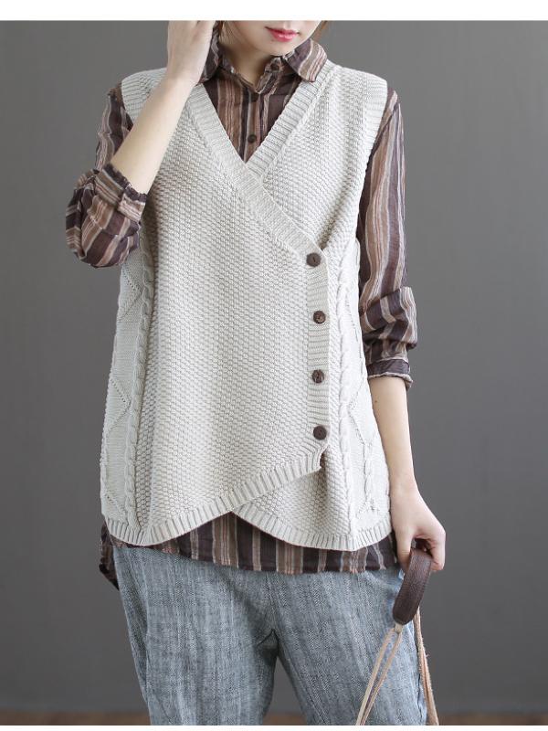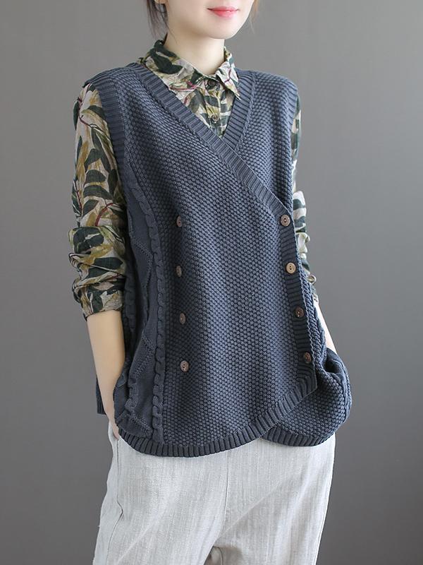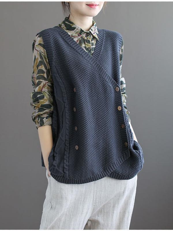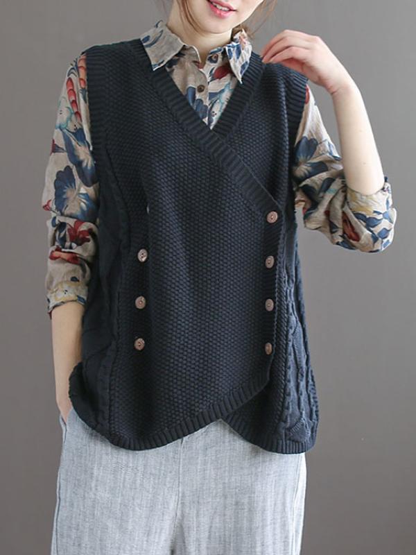 RETRO ASYMMETRIC DOUBLE-BREASTED KNITTING VEST