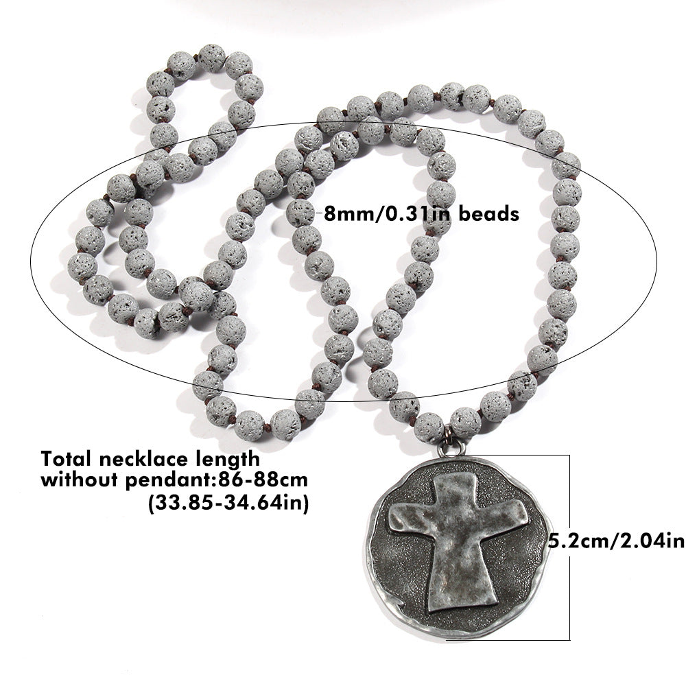 Retro Ethnic Style Geometric Cross Semi-precious stone Alloy Beaded Chain Pendant Necklace Long Necklace In Bulk Natural stone necklace