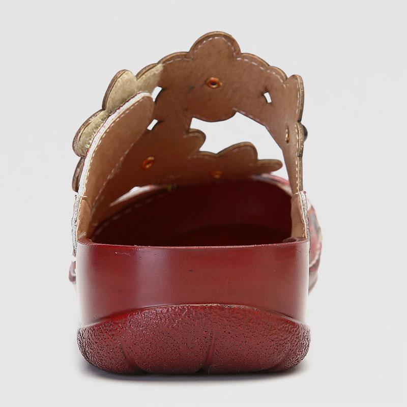 Retro Flower Pattern Handmade Leather Flat Round Head Comfortable Casual Sandals