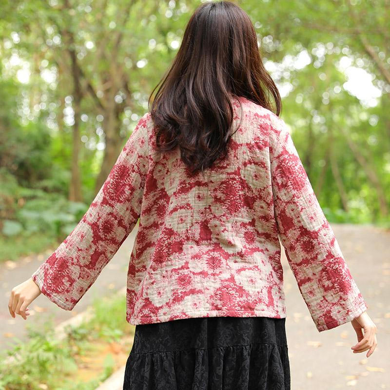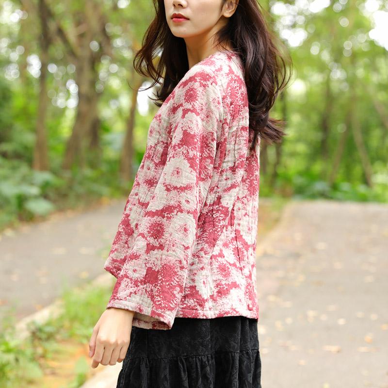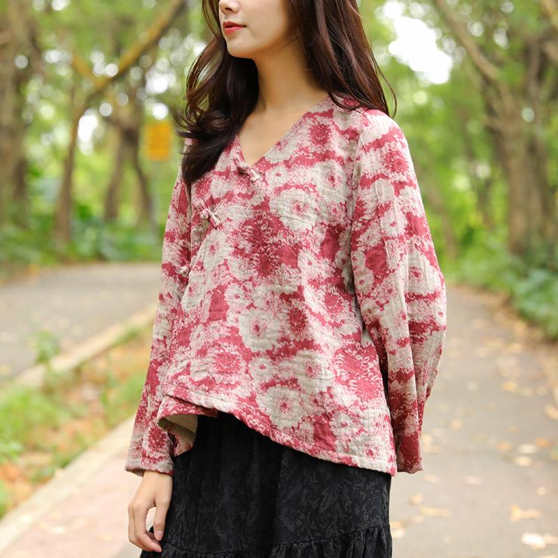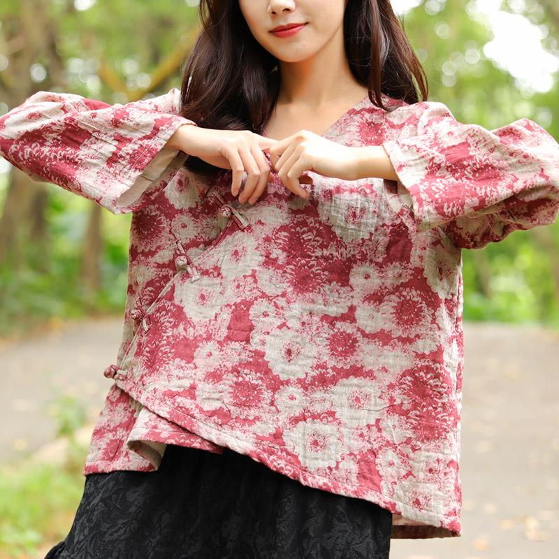 Autumn Winter Cotton Linen Casual Red Women Shirt