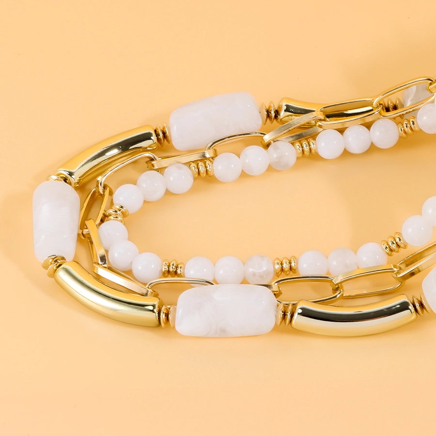 Retro Geometric Arylic Alloy Beaded Chain Paperclip Chain Layered Necklaces