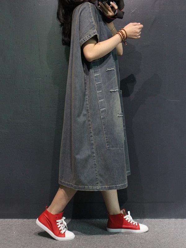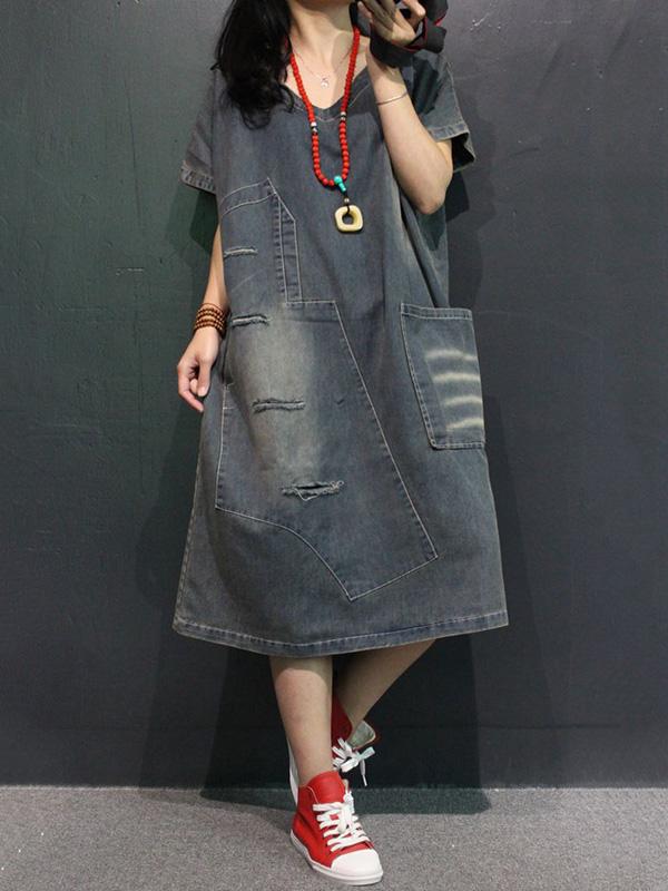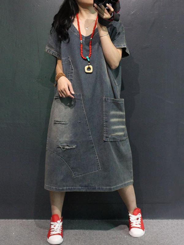 Retro Jean V-neck Dress