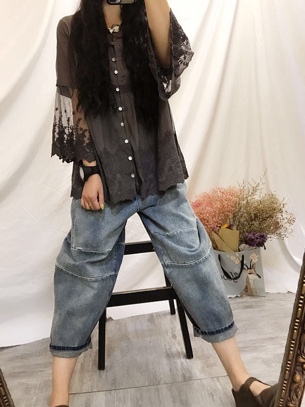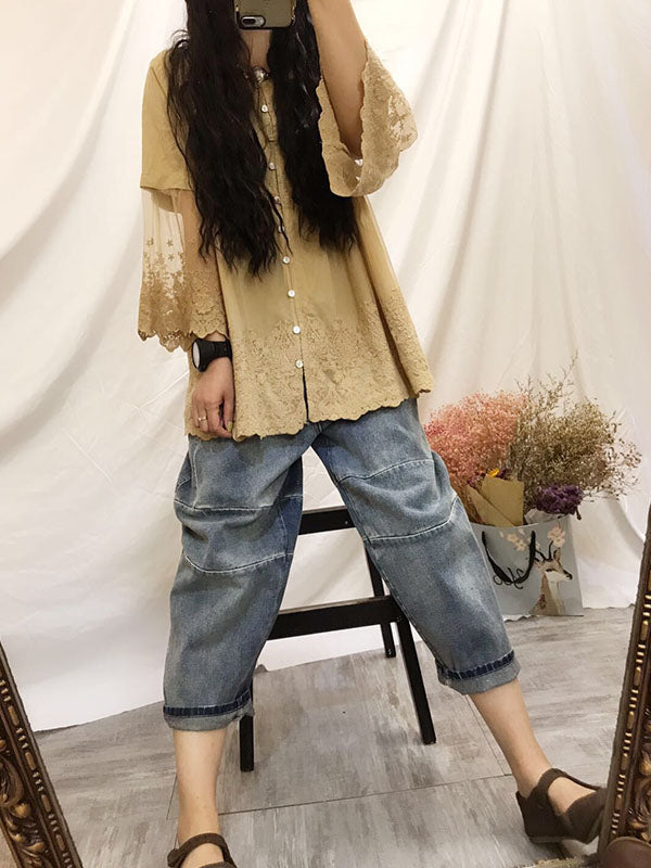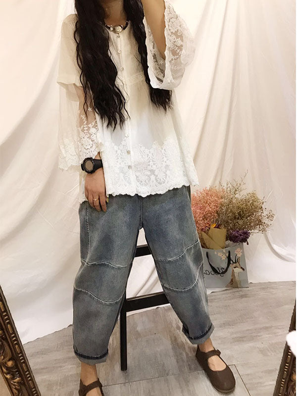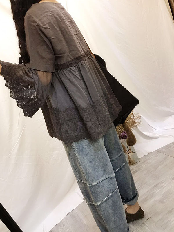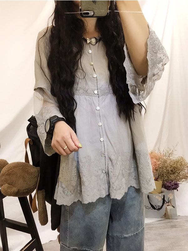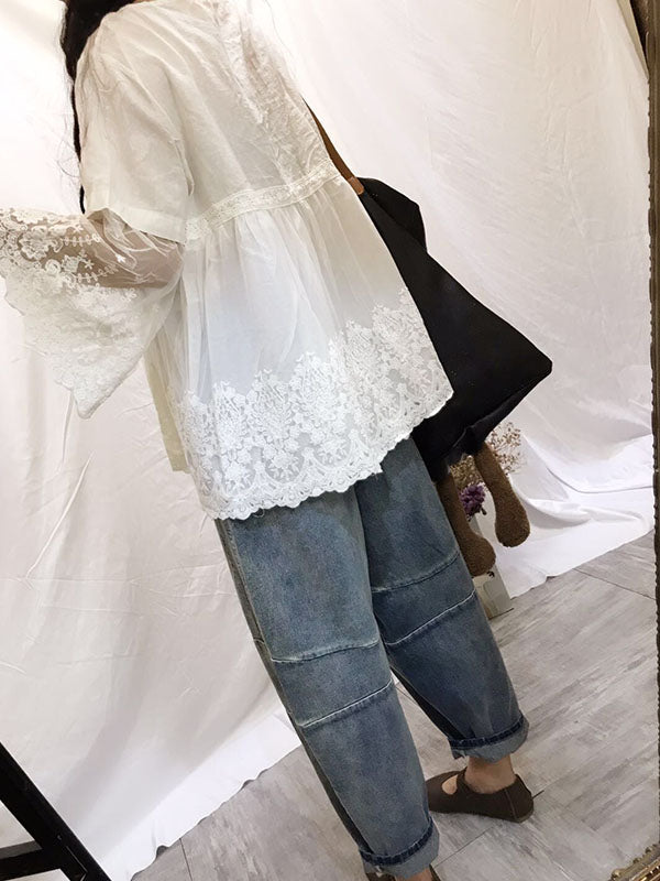 RETRO LACE EMBROIDERED GAUZE SLEEVES SHIRT