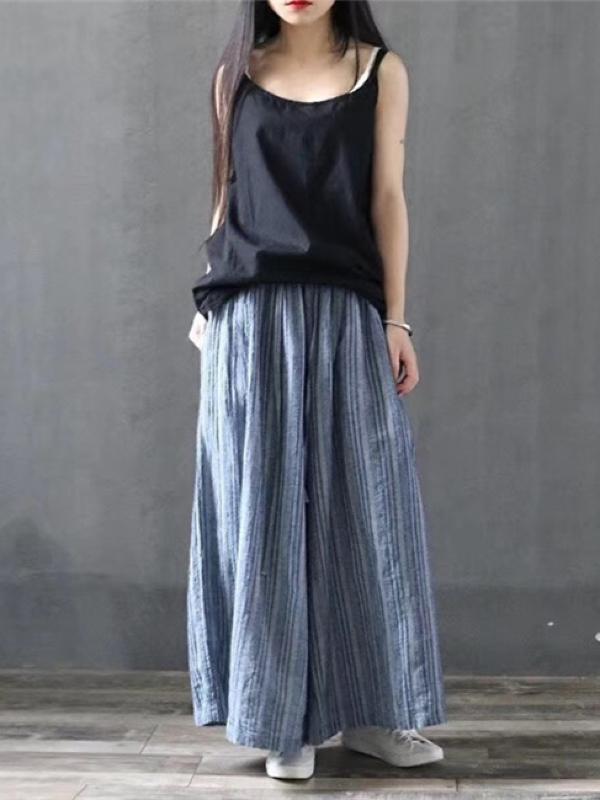 RETRO LINEN STRIPED WIDE LEG CULOTTES