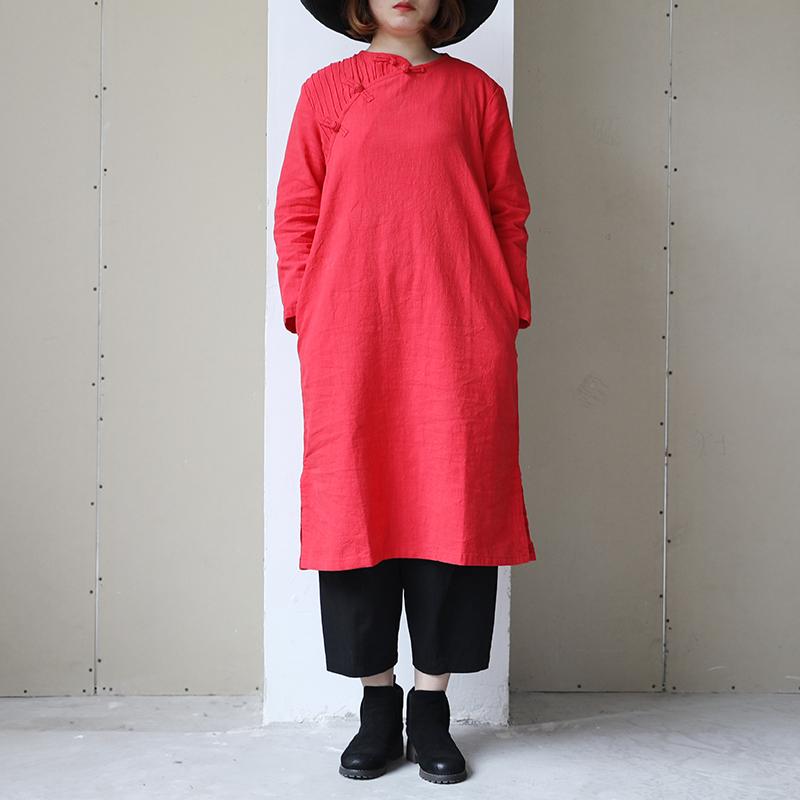 Retro Long Sleeve Women Pleated Side Slit Dress