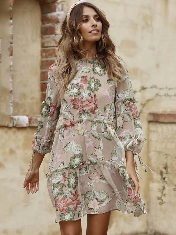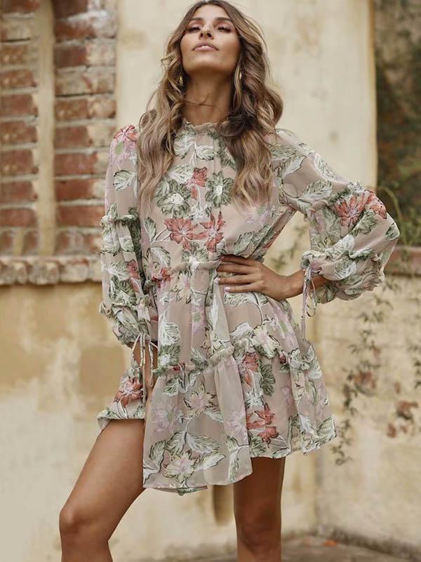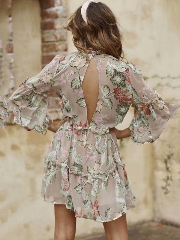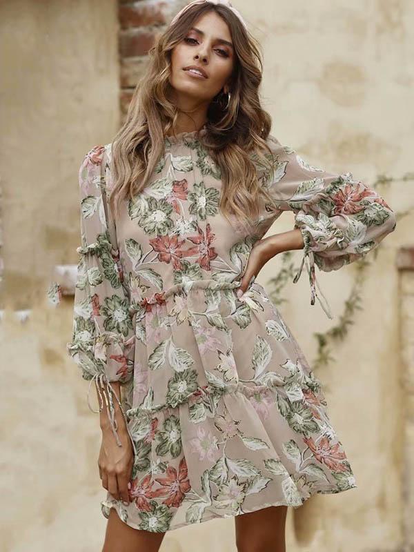 Retro Long Sleeves Floral Midi Dress