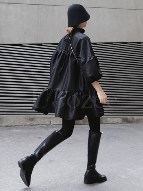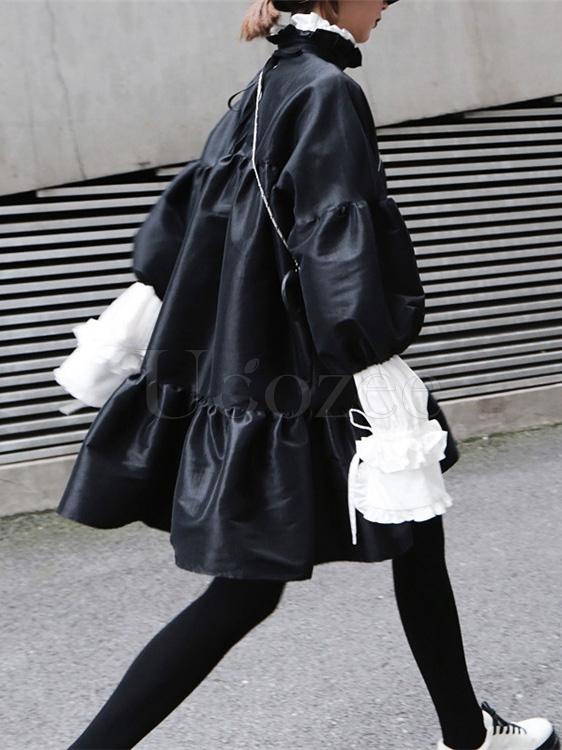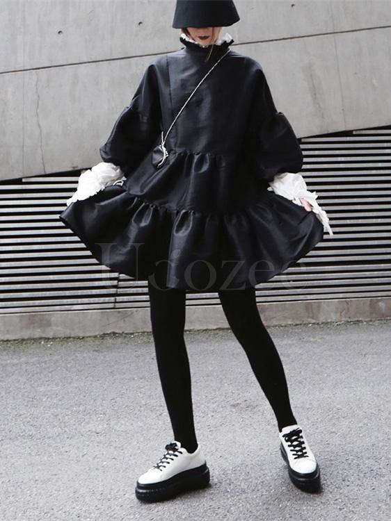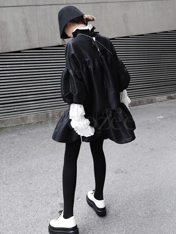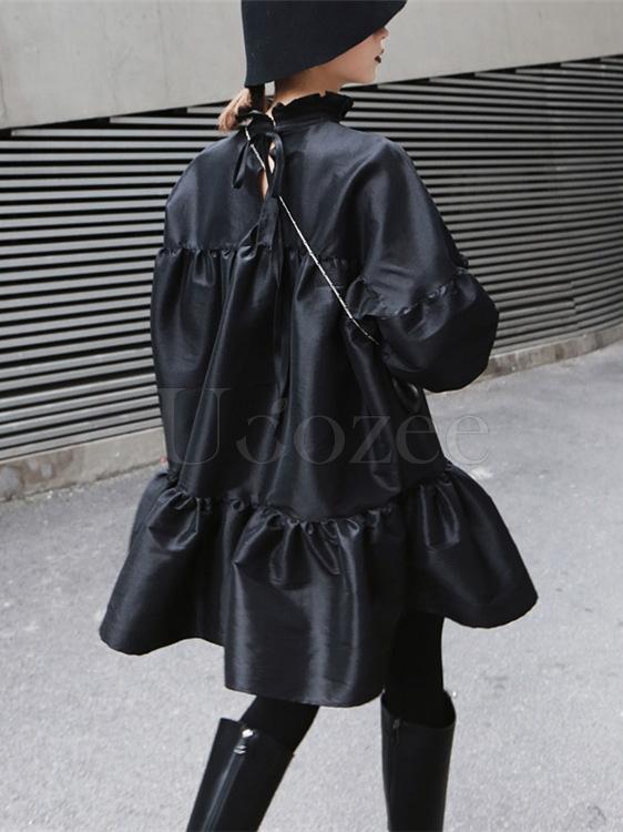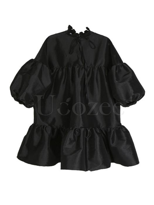 Retro Puff Sleeves Cropped Falbala Mini Dress